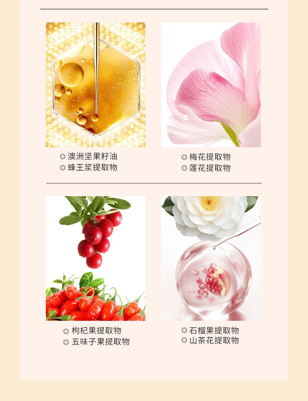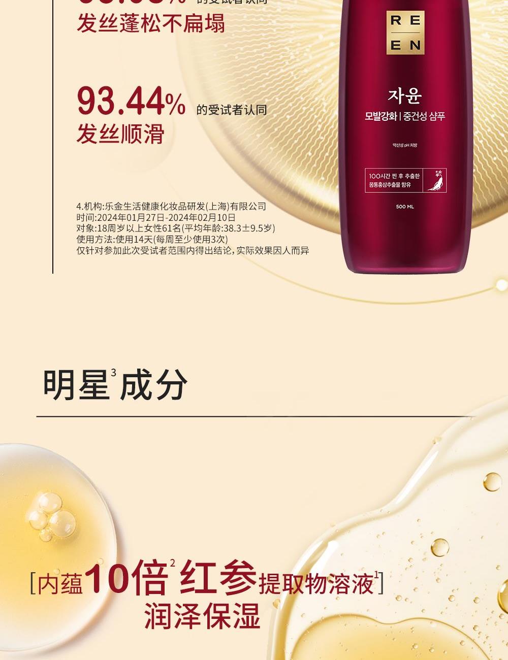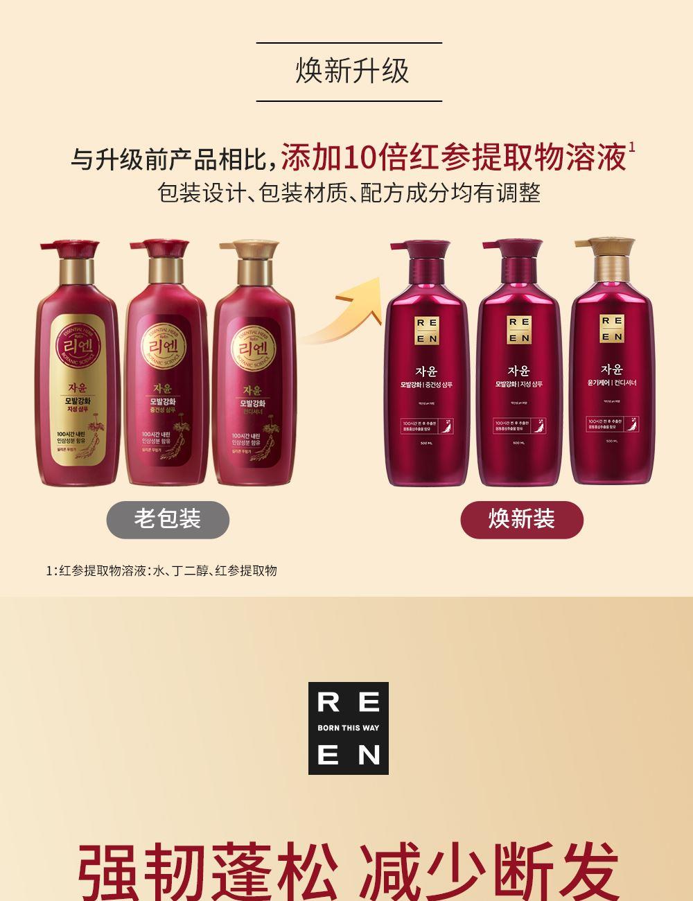 蕴含五味子,苟杞,山茶,亚洲白桦树汁等萃取成分,净韧发根,营养润泽受损发丝,令秀发散发水润光泽