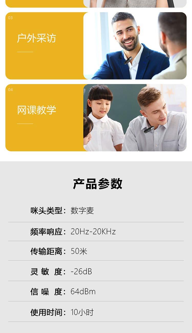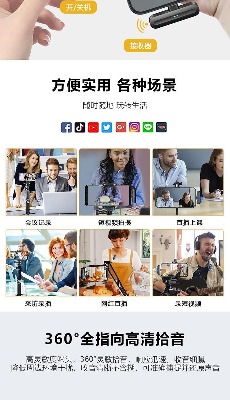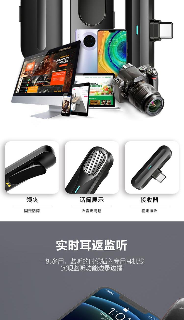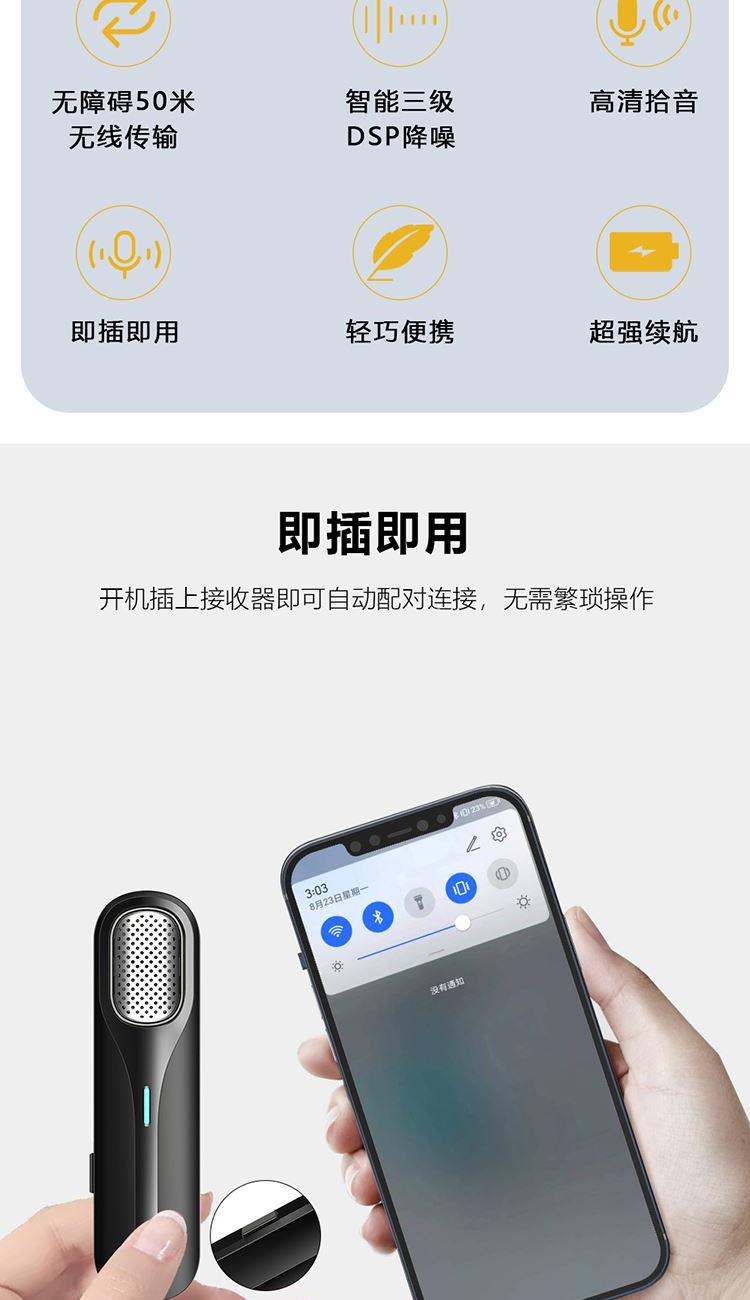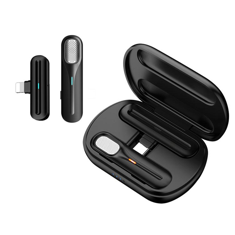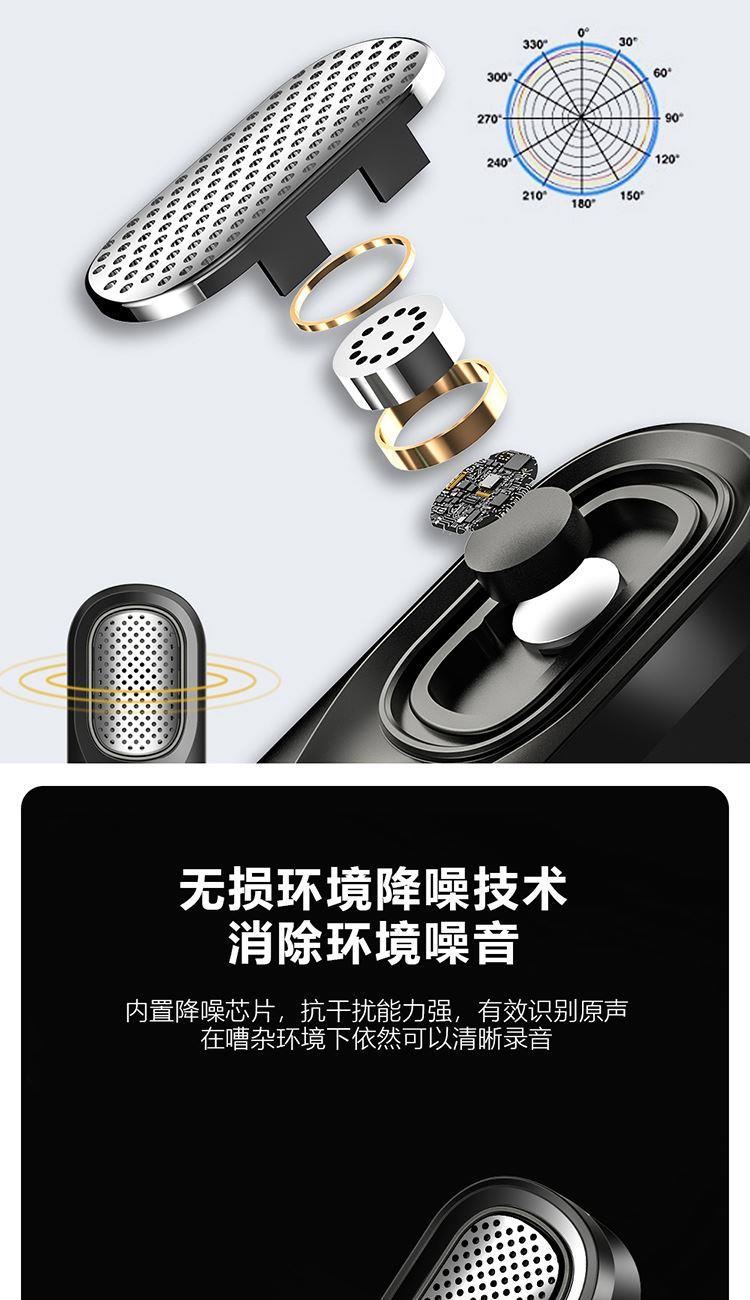 型号:DX01Type-c接口/苹果接口(二选一) 产品尺寸:7*4.5*2.3cm 颜色:雅黑 产品重量:98.5g 产品包装尺寸:9.5*7*5cm 麦克风电池容量:85mAh 充电仓电池:400mAh 续航时间:6-7小时左右 传输距离:15-20米 外箱尺寸:51*39*21.5cm 整箱净重:12kg 整箱毛重:12.7kg