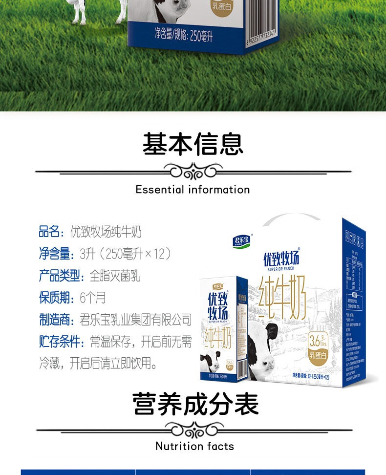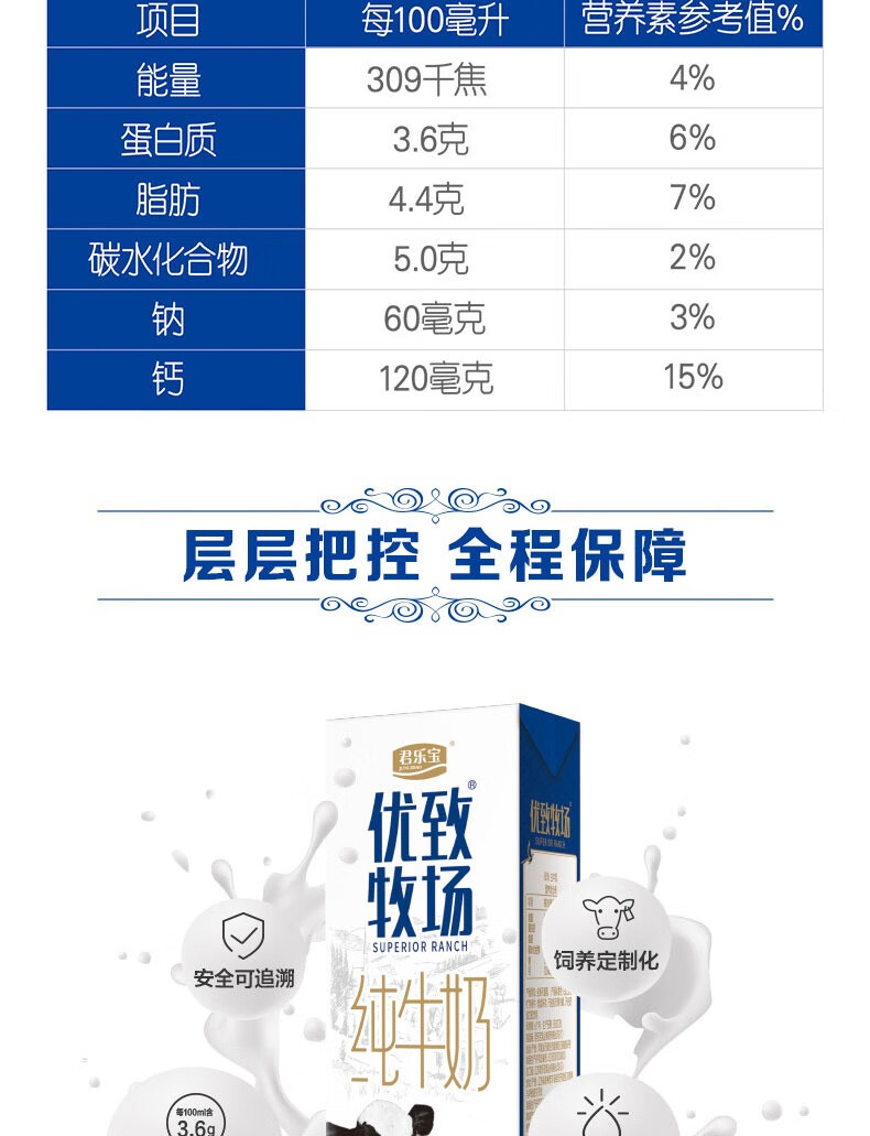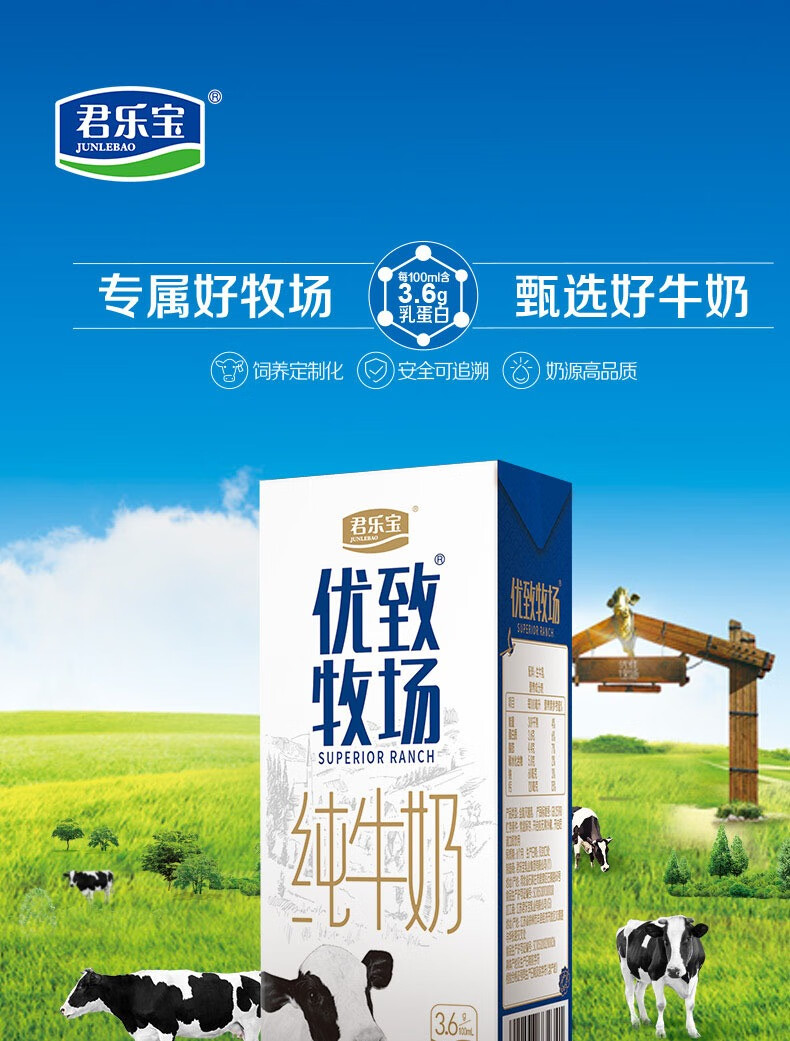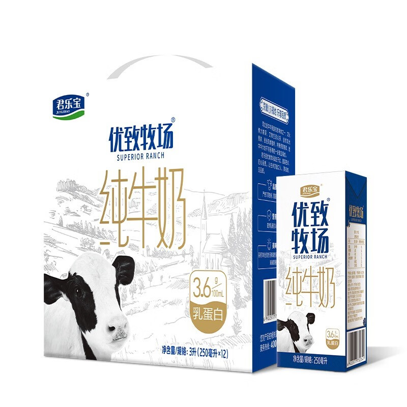 君乐宝优致牧场纯牛奶(原味)利乐砖250ml*12