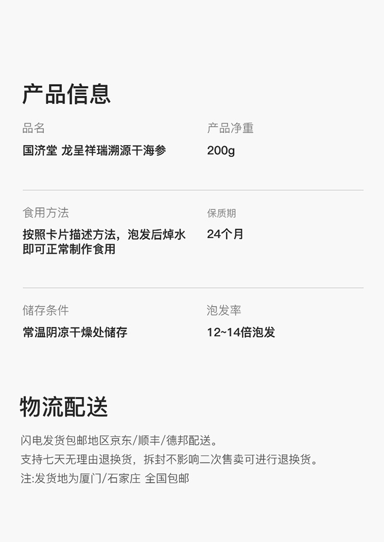 国济堂·龙呈祥瑞溯源干海参礼盒200克