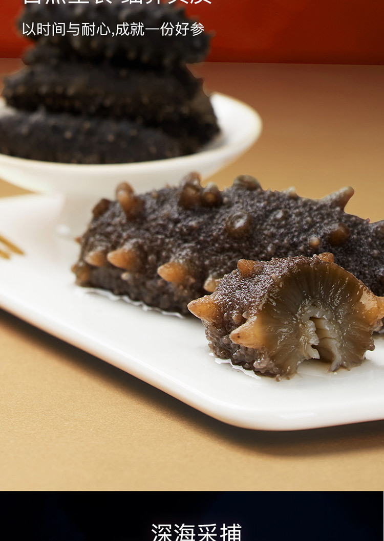 规格:50~80头; 类型及净含量:大连瓦房店溯源淡干海参 —200克; 泡发率:12倍泡发 储存方式:常温阴凉干燥处贮存 食用方法:按照卡片描述方法, 泡发后焯水,即可正常制作食用。 保质期:24个月 国济堂精选北纬39°地带冷水区域海参,深海养殖,精挑细选。口感Q弹爽滑,劲道有力。泡发率高,发头大。礼盒大气吸睛,区别于市面一般礼盒,送礼佳品。每盒带溯源标,参龄标,扫码追溯产地等。均有质检报告。