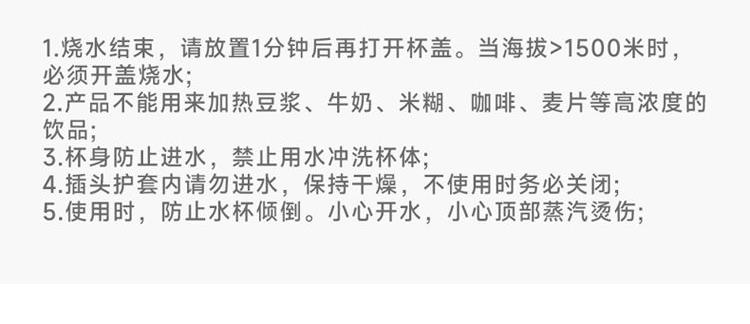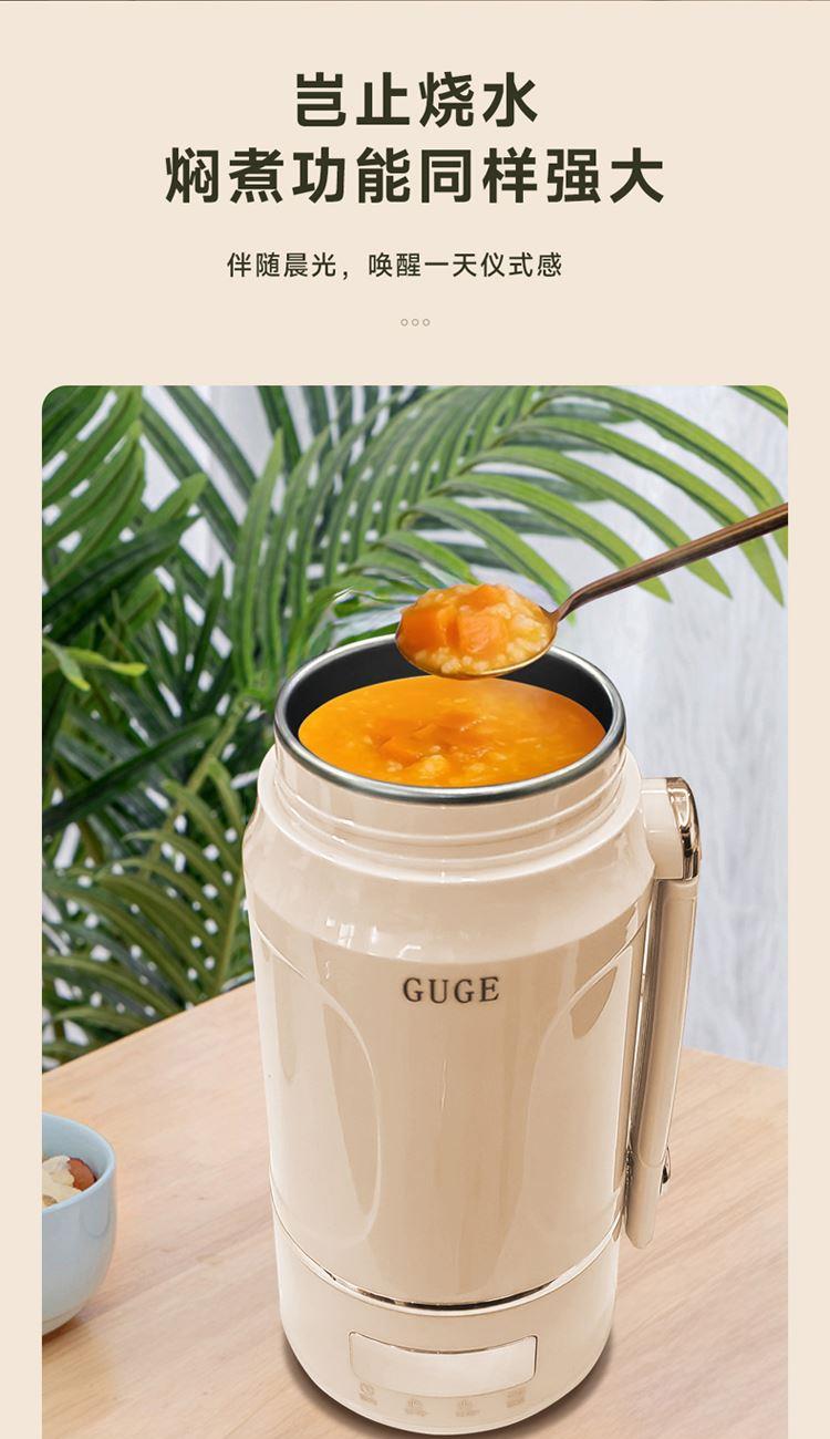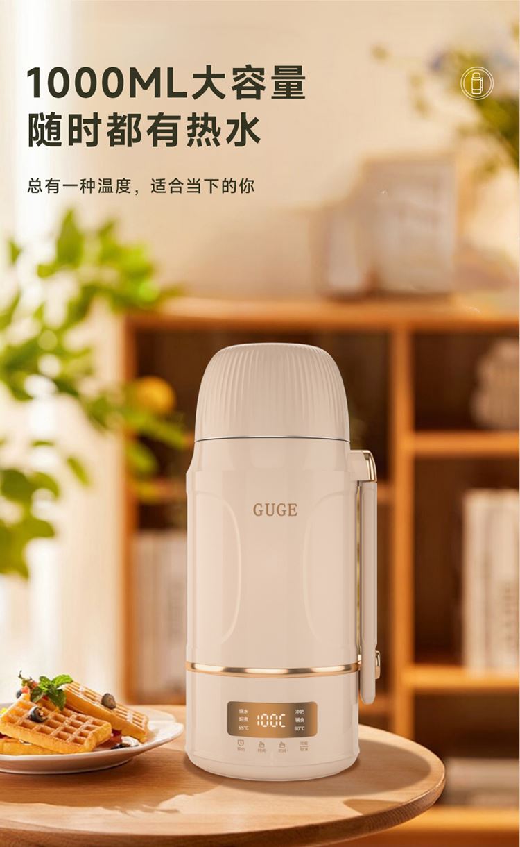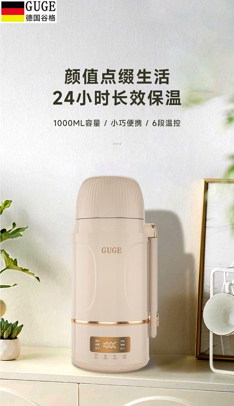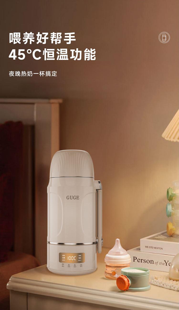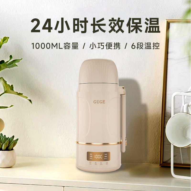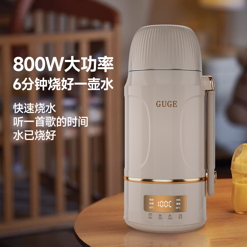 额定功率:800W 额定频率:50HZ 额定电压:220V 额定容量:1L 产品净重:1.1kg 包装方式:手提彩盒+邮箱 产品尺寸:135*123*295 邮包尺寸:170*170*345 产品净重:1.1kg 产品毛重:1.3kg ● 烧水、保温、焖煮三合一,一壶双盖随心切换 ● 食品级304不锈钢,特定4-5小时长效保温,插电60度恒温水24小时保温。 ● 一键触控,六档调温,多段烧水模式。 ● 800W大功率,约6min烧好一壶好水,养生炖煮,时刻轻养生。 ● 45度 恒温冲奶,无需反fu试水温。 ● 无缝一体内胆,不藏污渍清洗方便,加宽提手,一拎即走