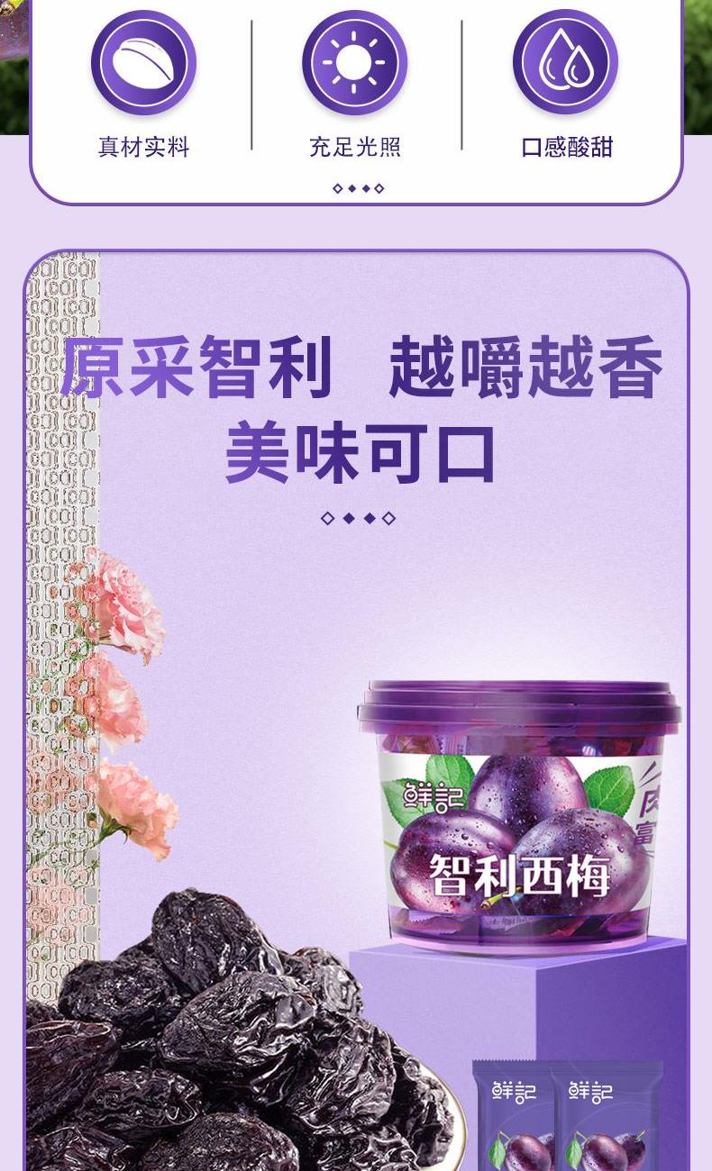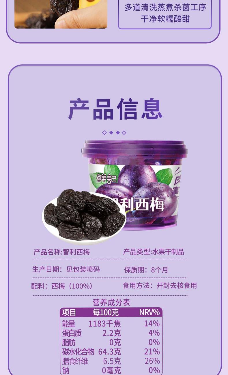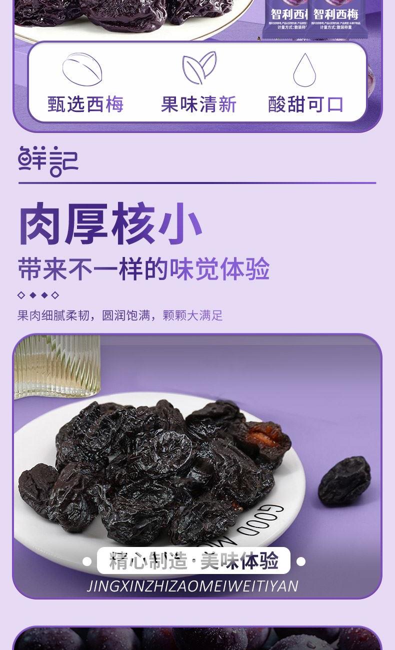 精选西梅,肉厚饱满; 原采智利,美味可口,越嚼越好吃。