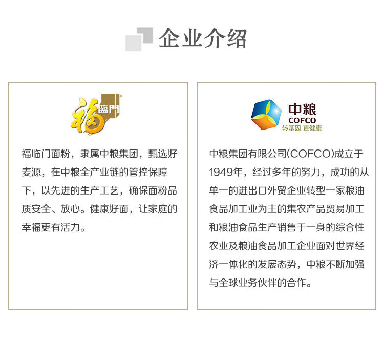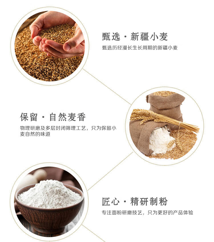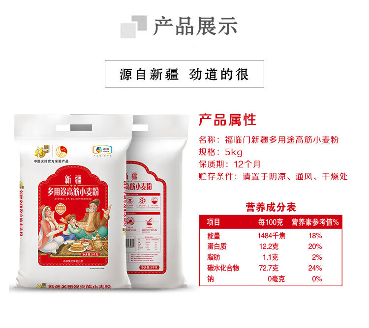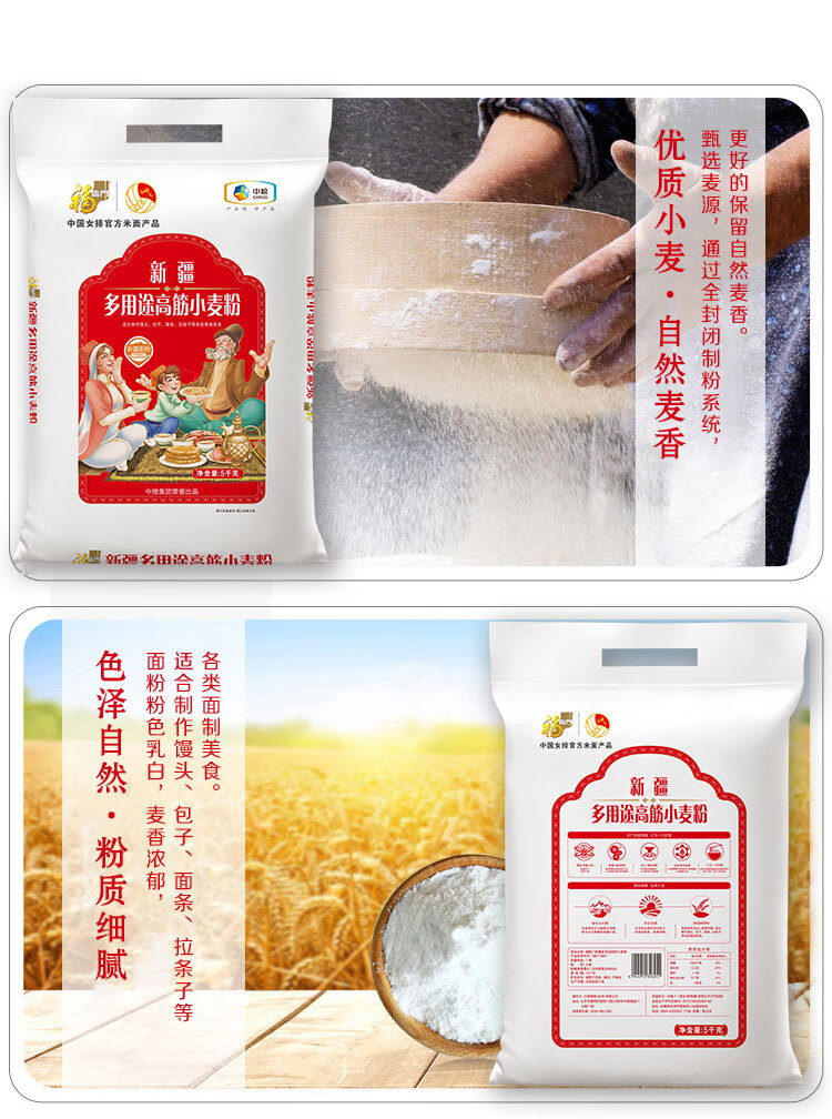 净含量:5kg 条形码:6944910346251 开票税率:9% 产品卖点: 央企全链管控,安全品质有保障;精选核心产区麦源,多道精研麦香浓多系列适配全场景,面食筋道易操作。