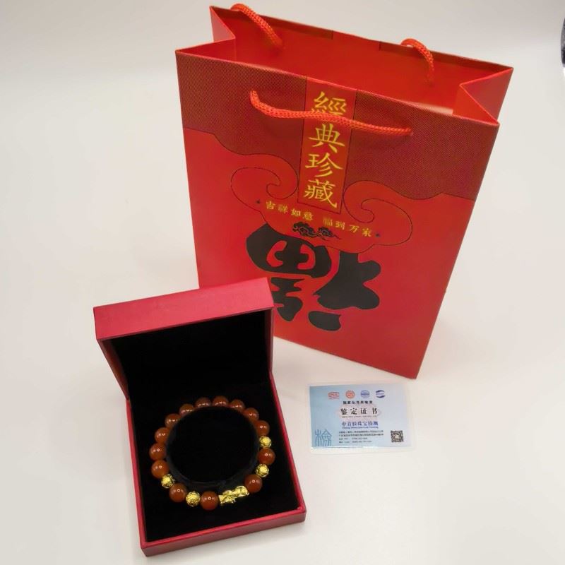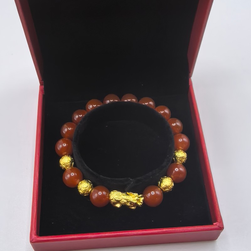 聚运鑫银镀金玛瑙招财貔貅手串保险首饰
