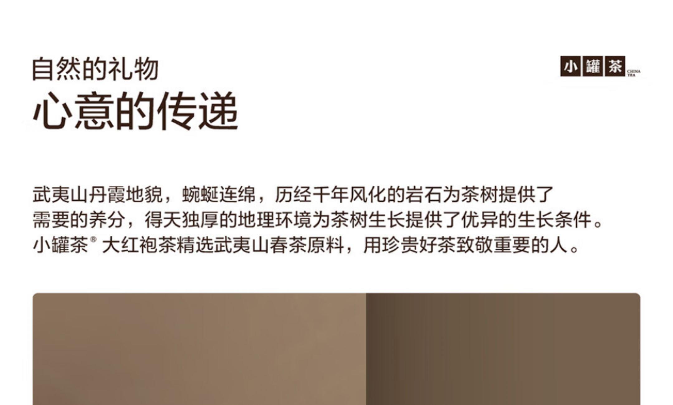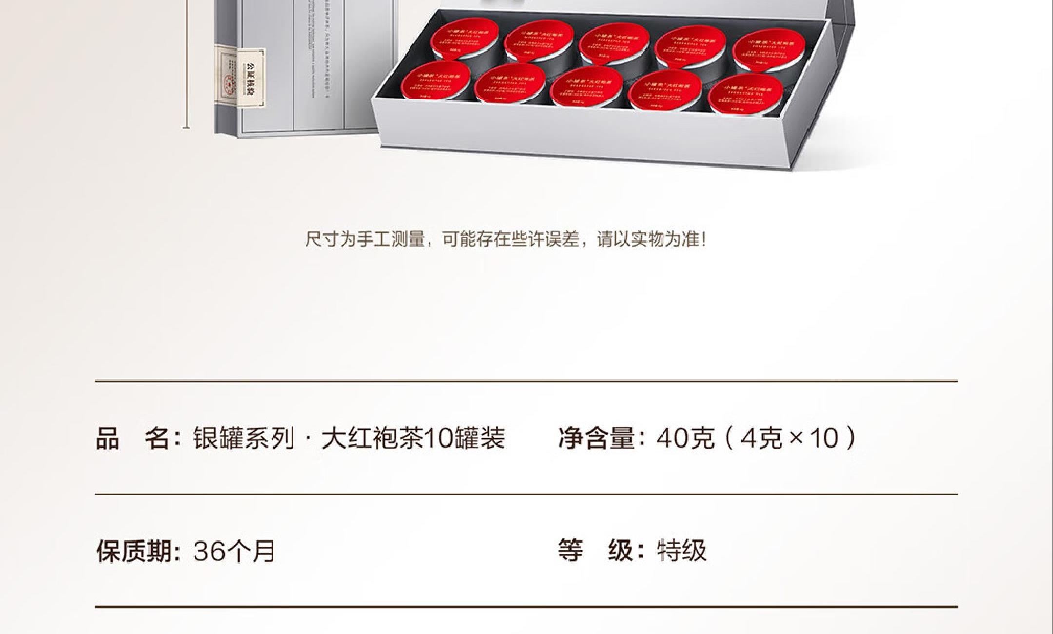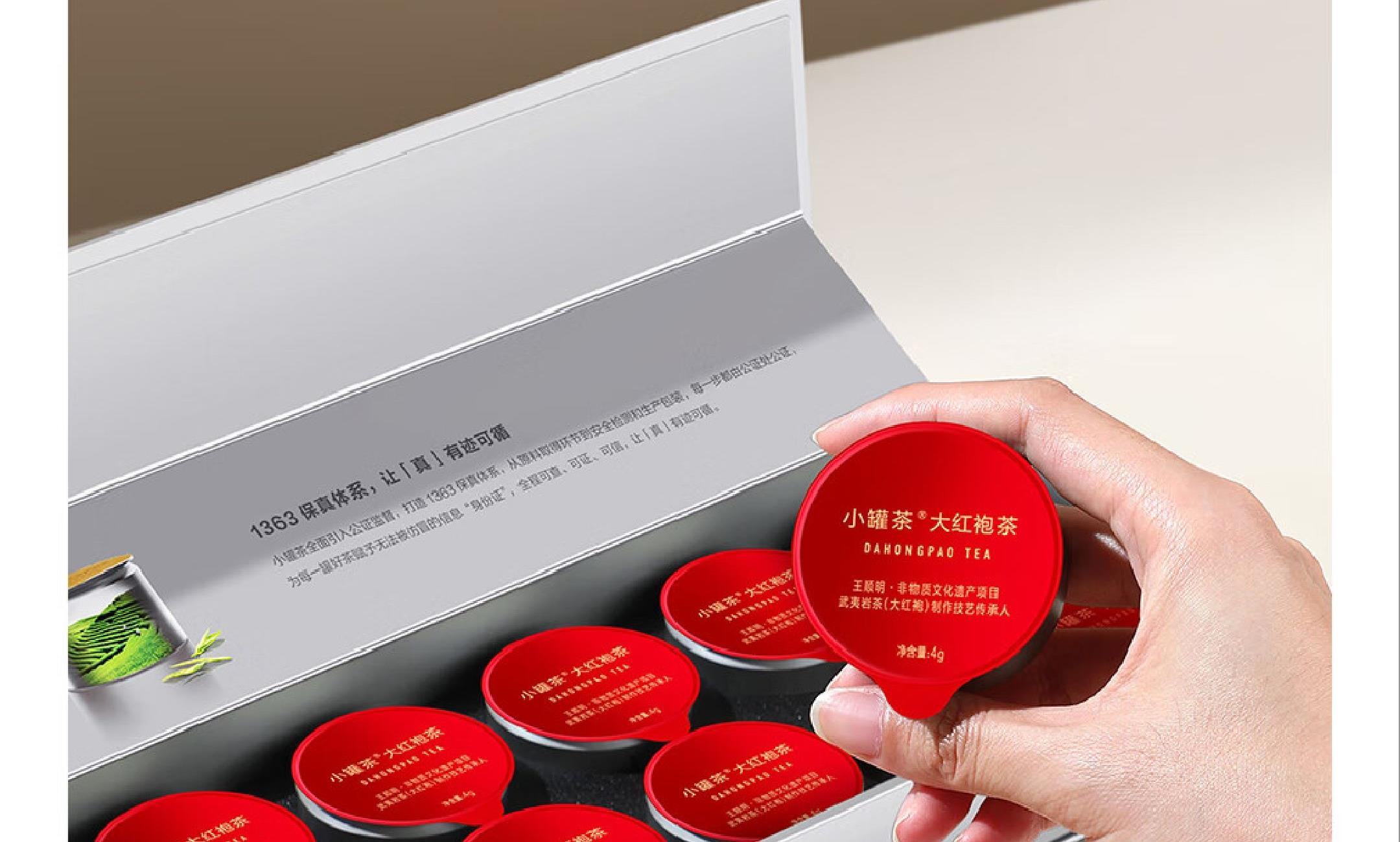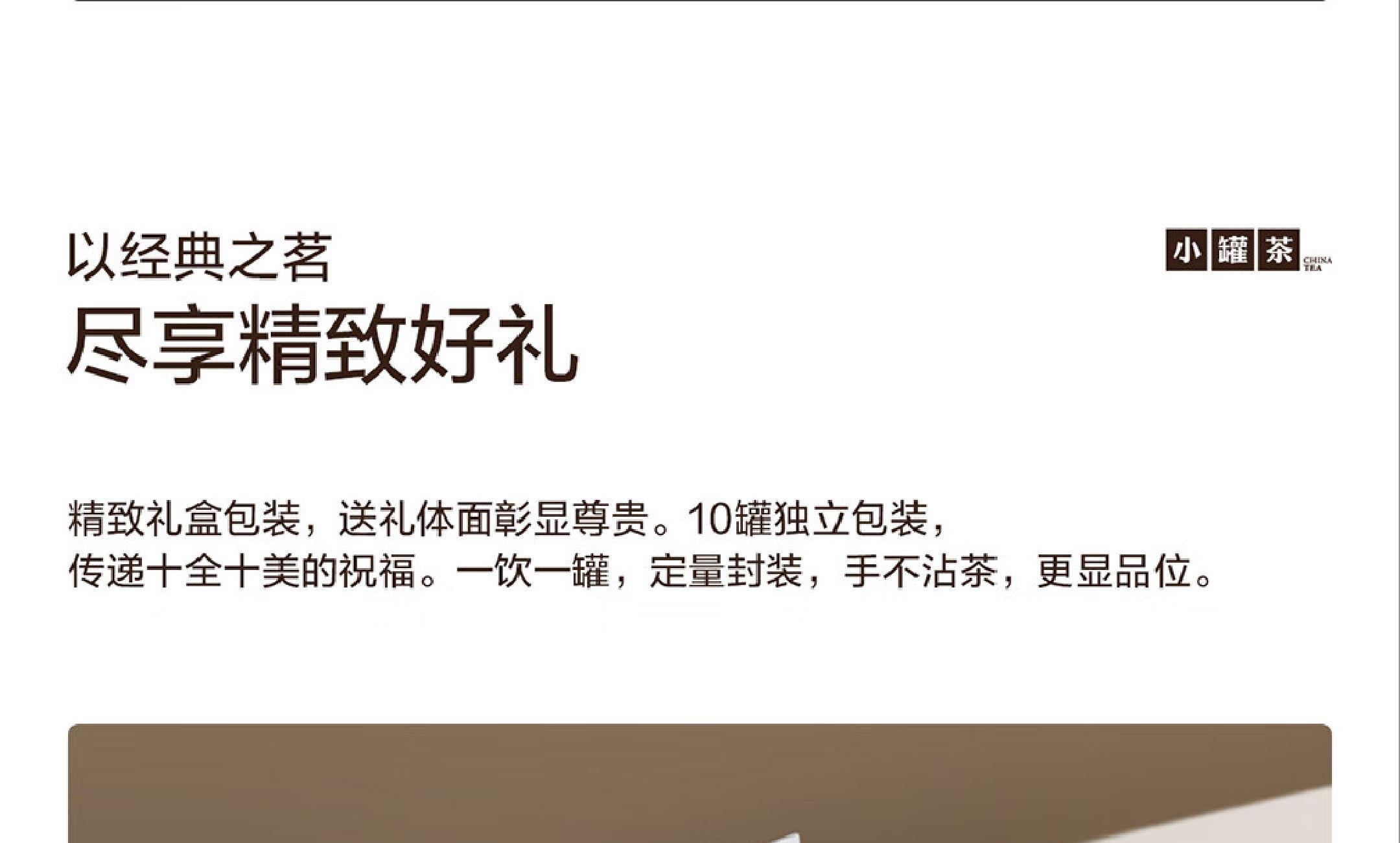轻奢商务茶叶pin牌-小罐茶(敢保真) 小罐茶全国线下2000+实体门店 小罐茶 x 敢保真(产地保真、年份保真、安全保真) 轻奢档次商务送礼就送小罐茶 源于山涧幽谷里的芳香奇迹 岩茶代表 暖心好礼 科学做茶 让好茶有标准 银罐系列·大红袍茶10罐装 等级:特级 配料:大红袍茶 净含量:40克(4x10)保质期:36个月 - 岩韵显 7泡有余香 王顺明监制 小罐茶@大红袍茶,凭借王顺明40余年积累的制茶经验对制茶过程中火候的轻重、温度的高低、时间的快慢进行把控,造就7泡有余香的优异品质。 精致礼盒包装,送礼体面彰显尊贵。10罐独立包装传递十全十美的祝福。一饮一罐,定量封装,手不沾茶,更显品位。宜礼宜饮 适用多种社交场景传递美好情谊 一盒满足礼赠贵宾、商务会面、重要答谢等需求。