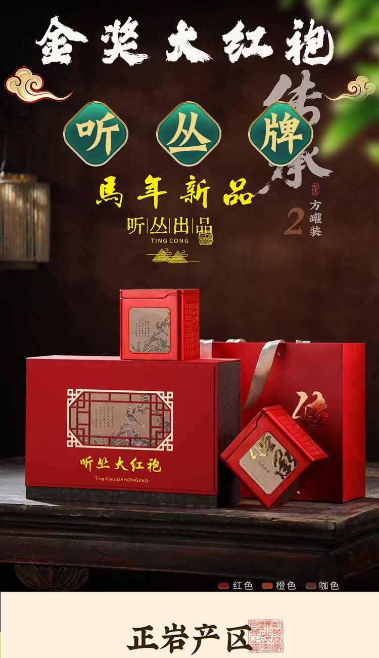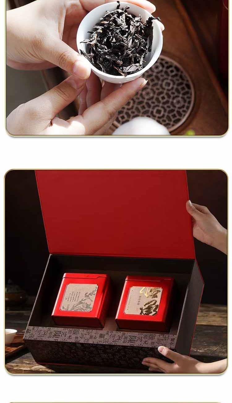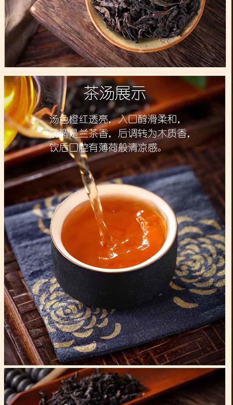 【茶名】:大红袍 【重量】:250g 【配件】:铁罐+礼盒+手提袋 【口味】:清香型 【产地】:福建·武夷山 大红袍产于福建武夷山,属于乌龙茶,其外形条索紧结,色泽绿褐鲜润,冲泡后汤色橙黄明亮,叶片红绿相间。大红袍的香气馥郁,具有兰花香,且“岩韵”明显,此外,大红袍的耐泡性极强,冲泡七、八次仍有香味。 大红袍的口感醇厚且甘甜,带有轻微的涩感,但回甘迅速,口腔留香持久,香气高扬,花香与果香交织,汤色橙黄明亮!