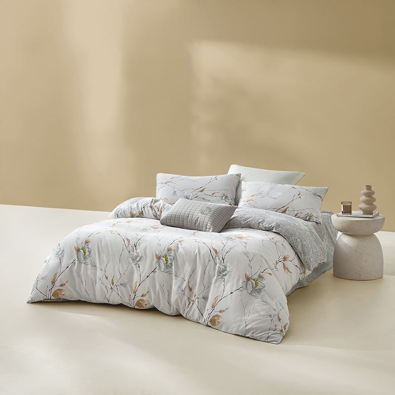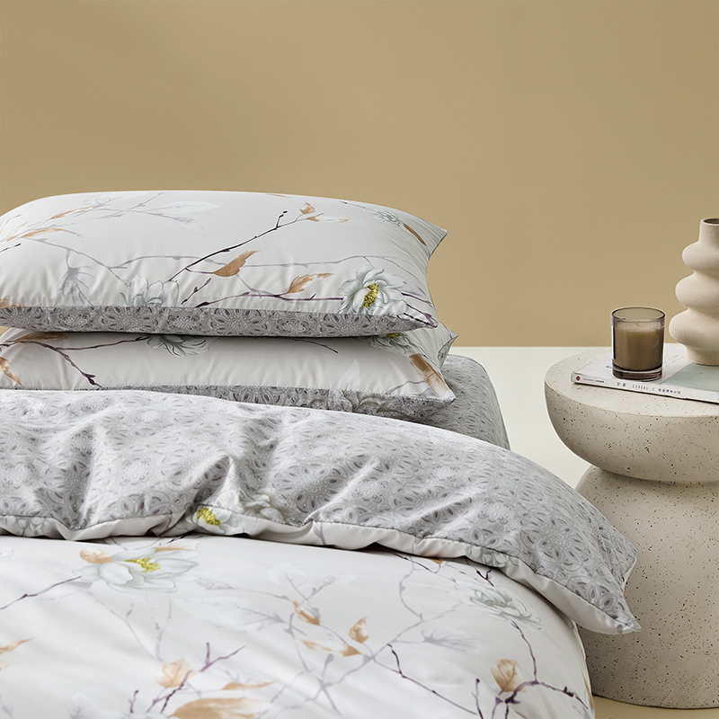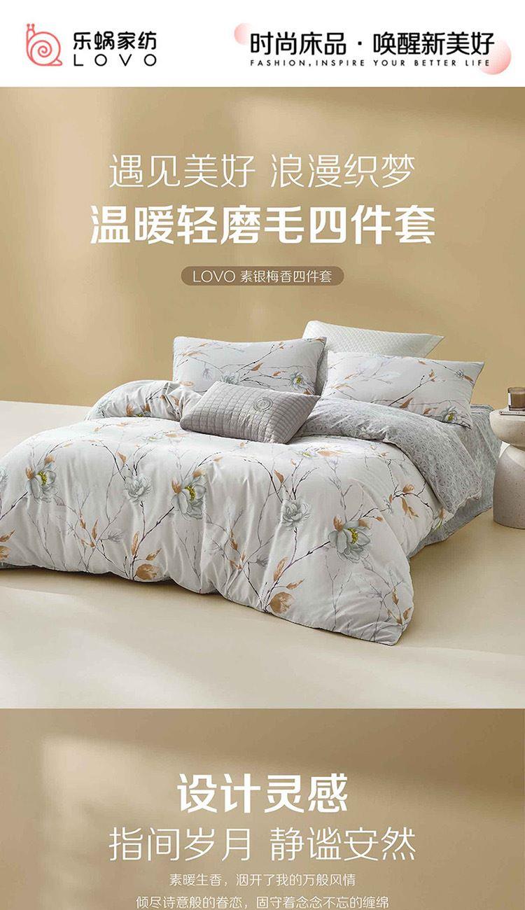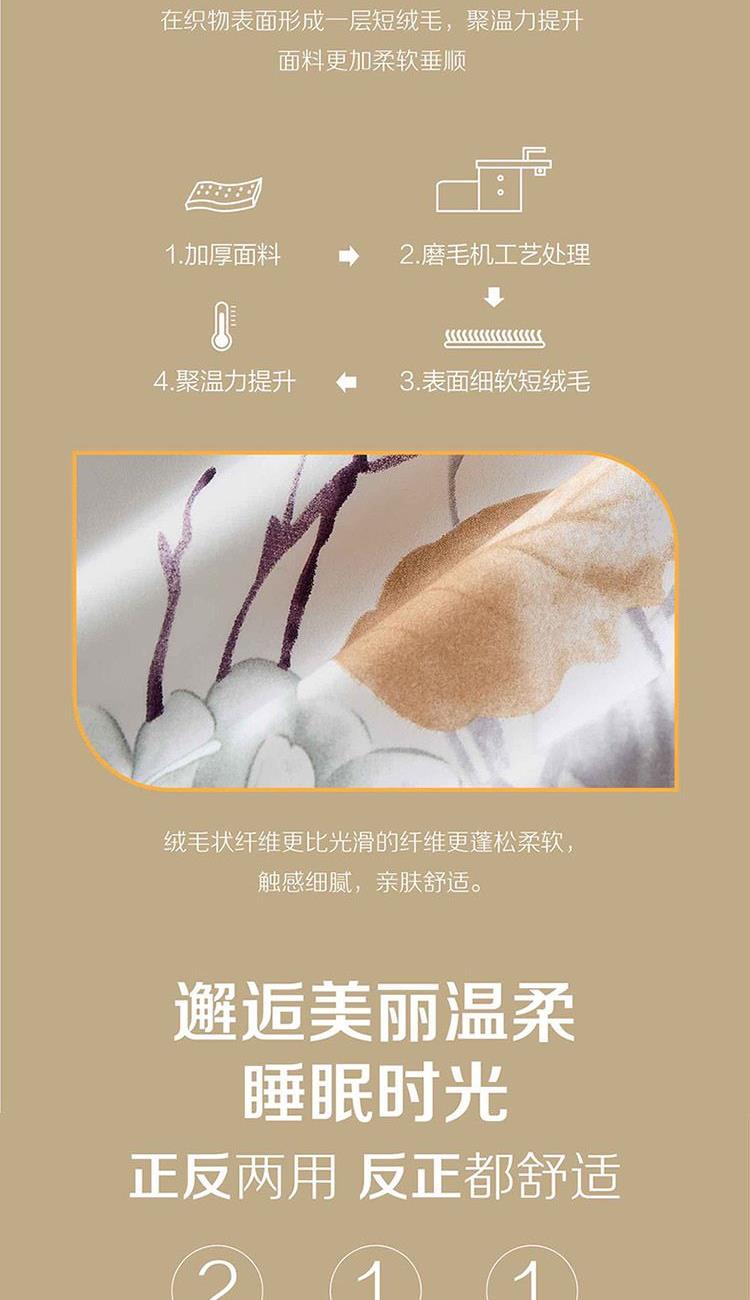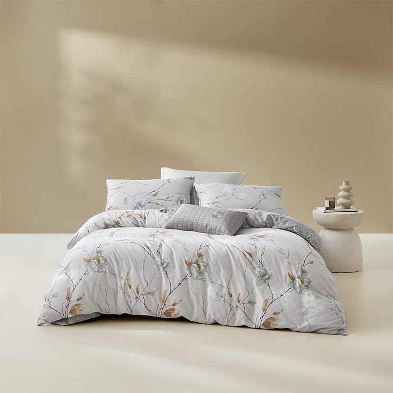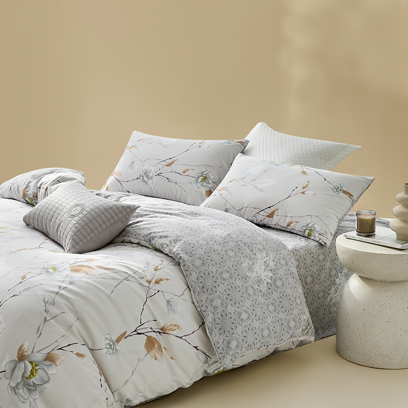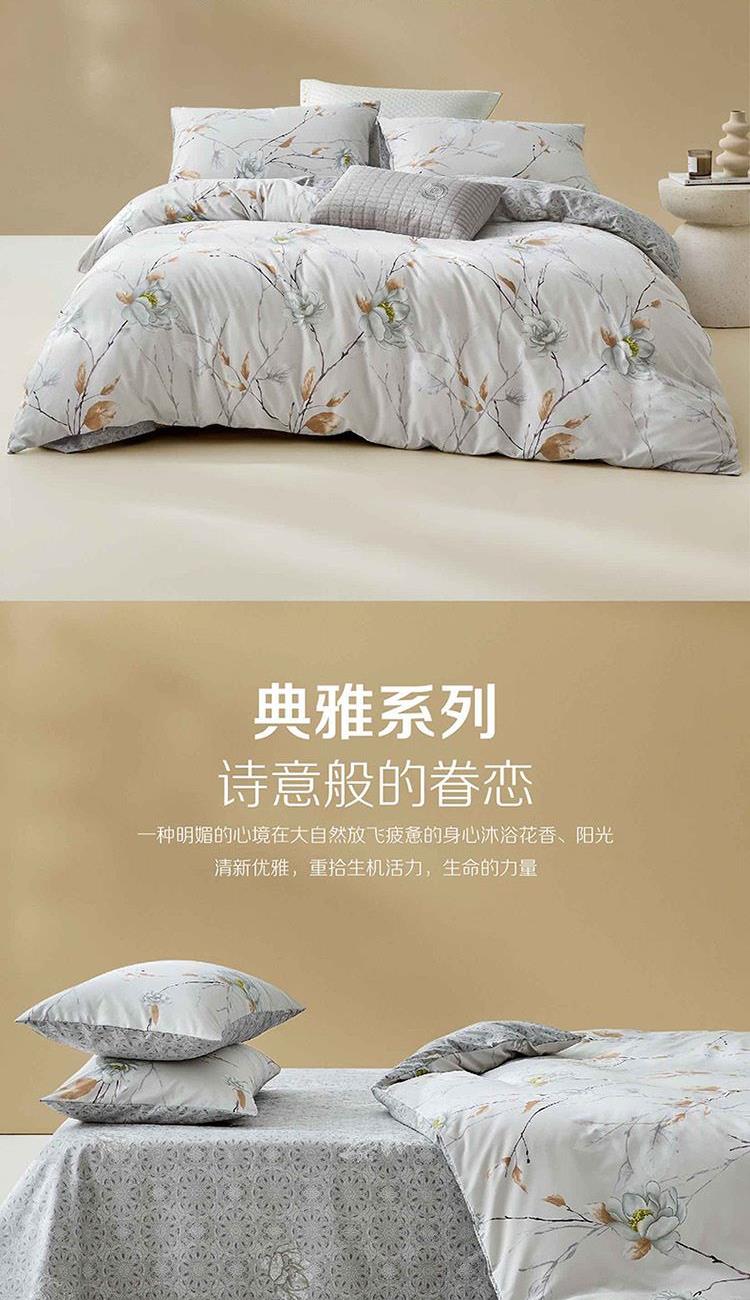 规 格 :200*230cm 被 套 :200*230(cm)*1 被 单 :230*241(cm)*1 枕 套 :48*74(cm)*2 面 料 :磨毛印花(聚酯纤维) 包 装 :礼盒包装 银灰色底纹配合写意花卉,给人清新淡雅的感觉。同时梅花的写意花设计给人梅花香自苦寒来的励志意境。寓意奋发向上,登高枝的人生境界