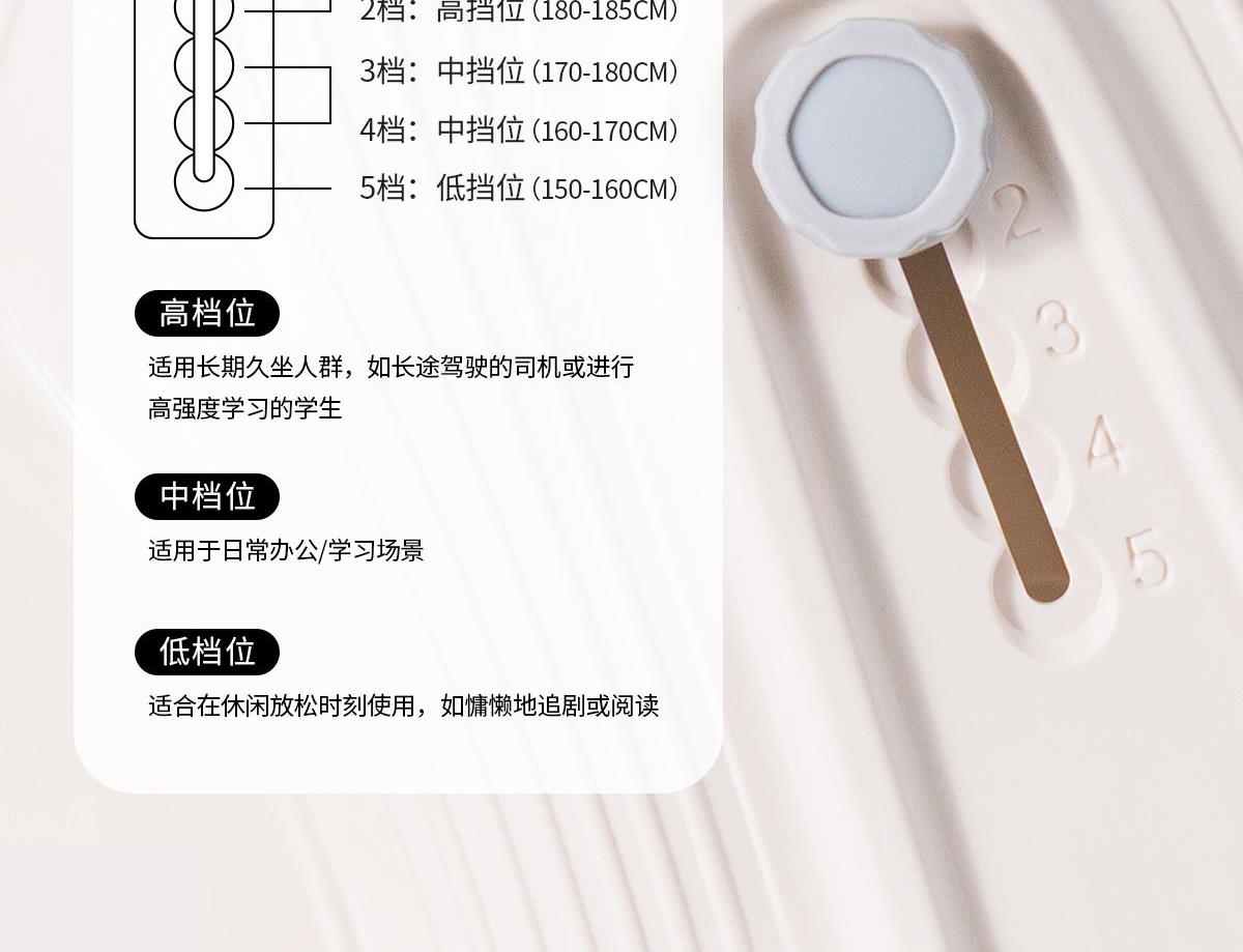 ①科学分区,贴合身体曲线 ②多挡调节,满足多样化需求 ③动态追背,随肌而动