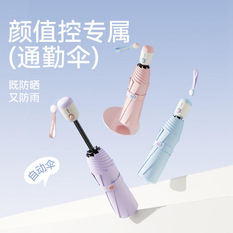 左都ZD2565蛋仔自动三折节节收8K黑胶防晒遮阳伞