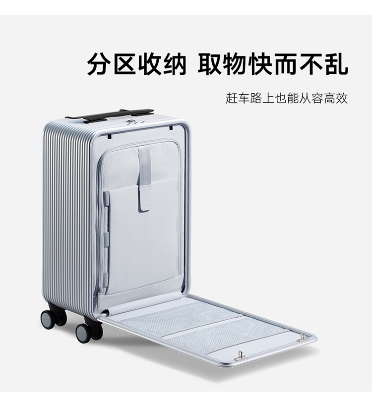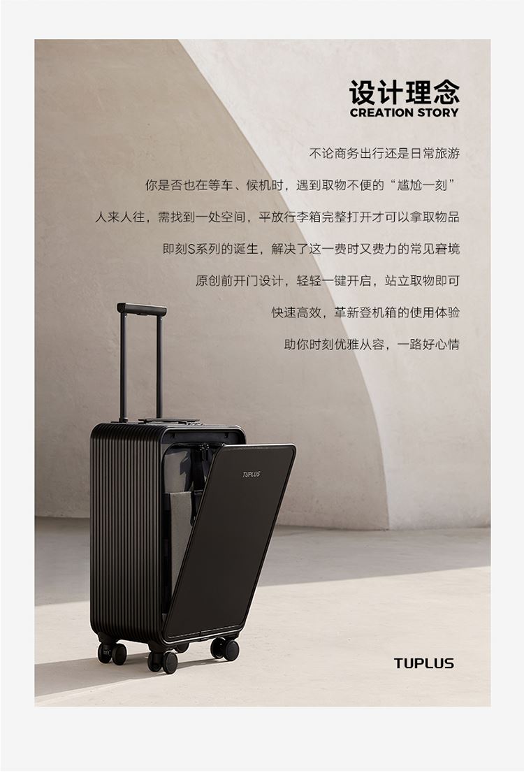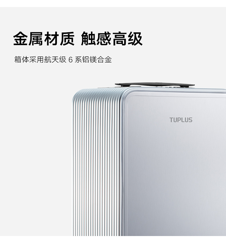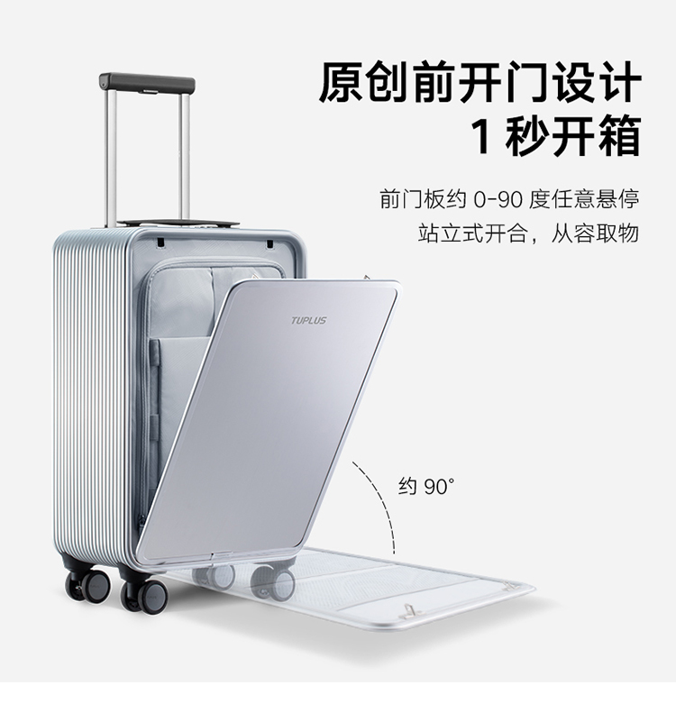 即刻系列铝镁合金登机箱是TUPLUS途加一款产品,首创了“按压式前开”的开箱设计。它的诞生解决了人们在等车、候机时,取物不便的常见窘境,0-90。任意悬停,小空间下拿取物品依然方便。为旅者革新了更高效的开箱体验,旅途中快人一步,优雅从容。 荣获德国红点产品设计大奖 原创“按压前开式”开箱设计,实现站立取物 航天级铝镁合金材料,经典金属