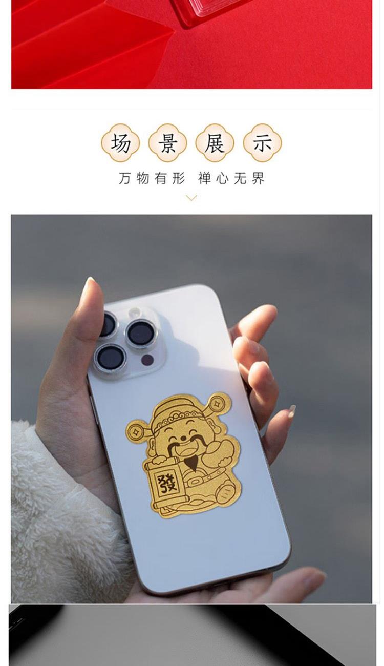 财富与富贵: 直接的含义就是财富、富贵和荣华。贴上财运千金系列,寓意着招财进宝、财源广进、生意兴隆。 吉祥与喜庆: 金色是祥瑞之色,象征着吉祥、光明和辉煌。它能带来积极向上的能量,寓意着生活幸福美满,前途光明。 辟邪与护身: 在传统文化中,黄金被视为纯净、尊贵之物,具有抵挡煞气、驱邪避凶的作用。金箔虽薄,但也承袭了这一寓意,能为使用者提供守护。