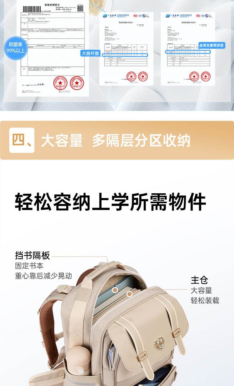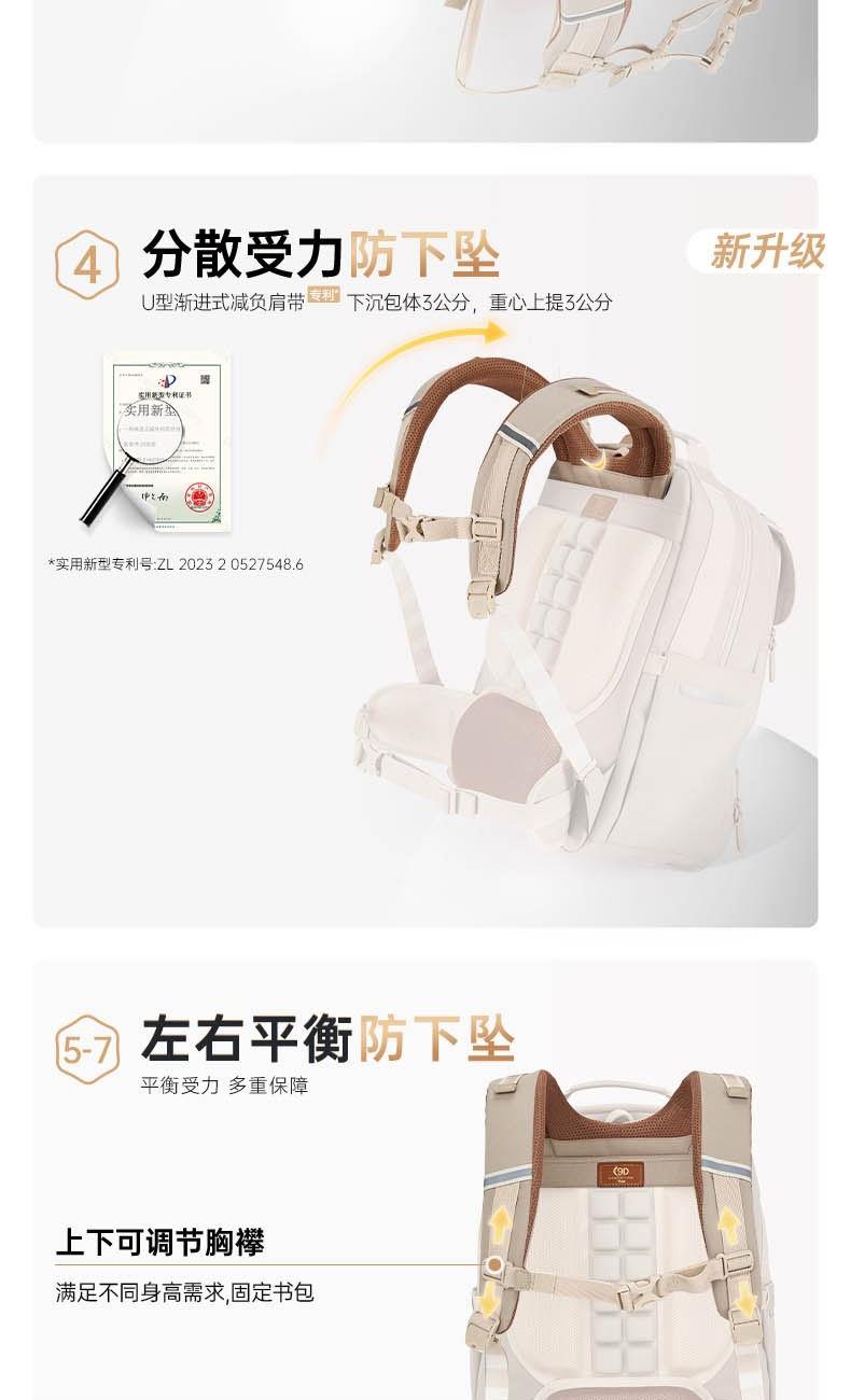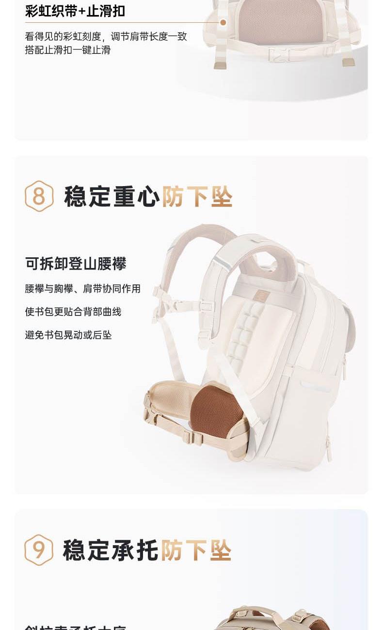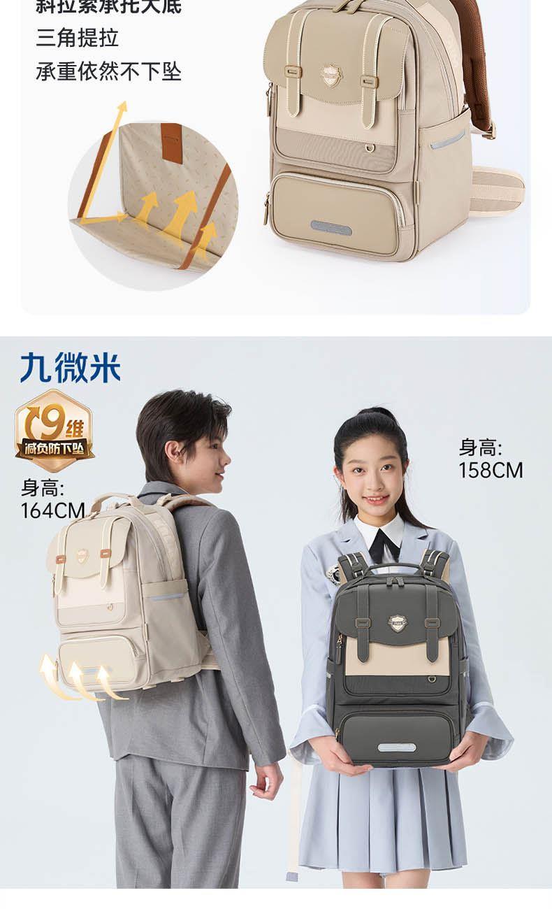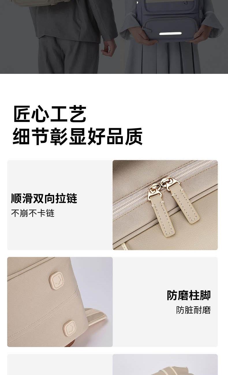 货号:U5095 主体面料:织物+合成革 里料:织物 颜色:米白 冰川灰 定位: 150-175CM以上/初高中功能书包 净重:0.95kg 24.6L