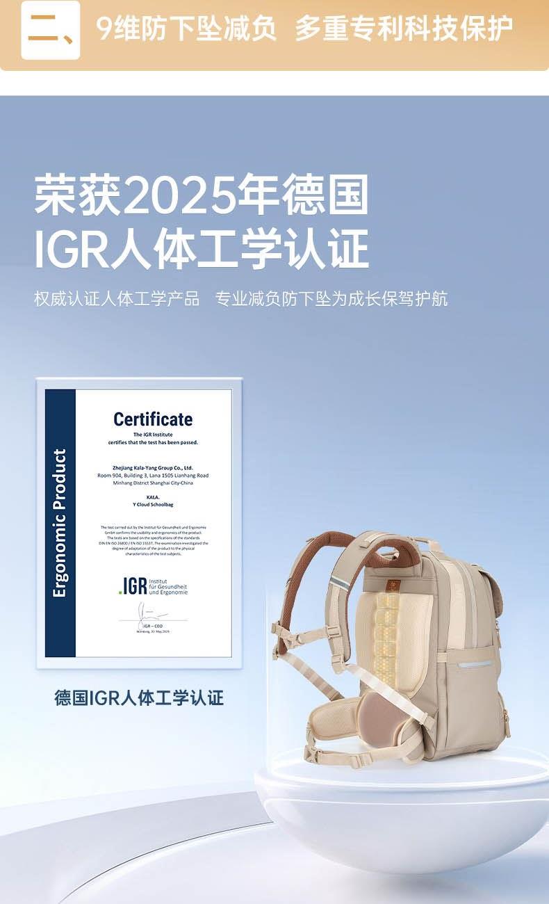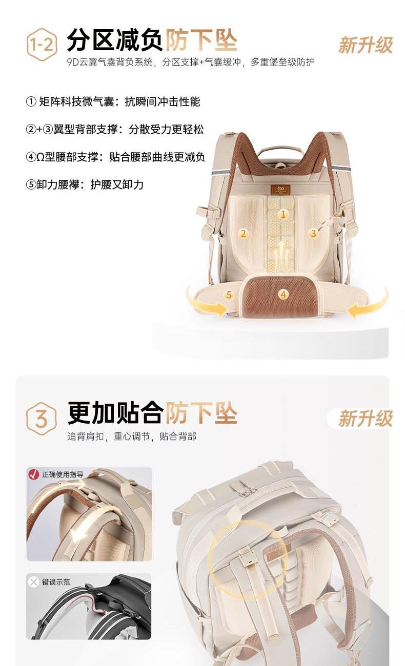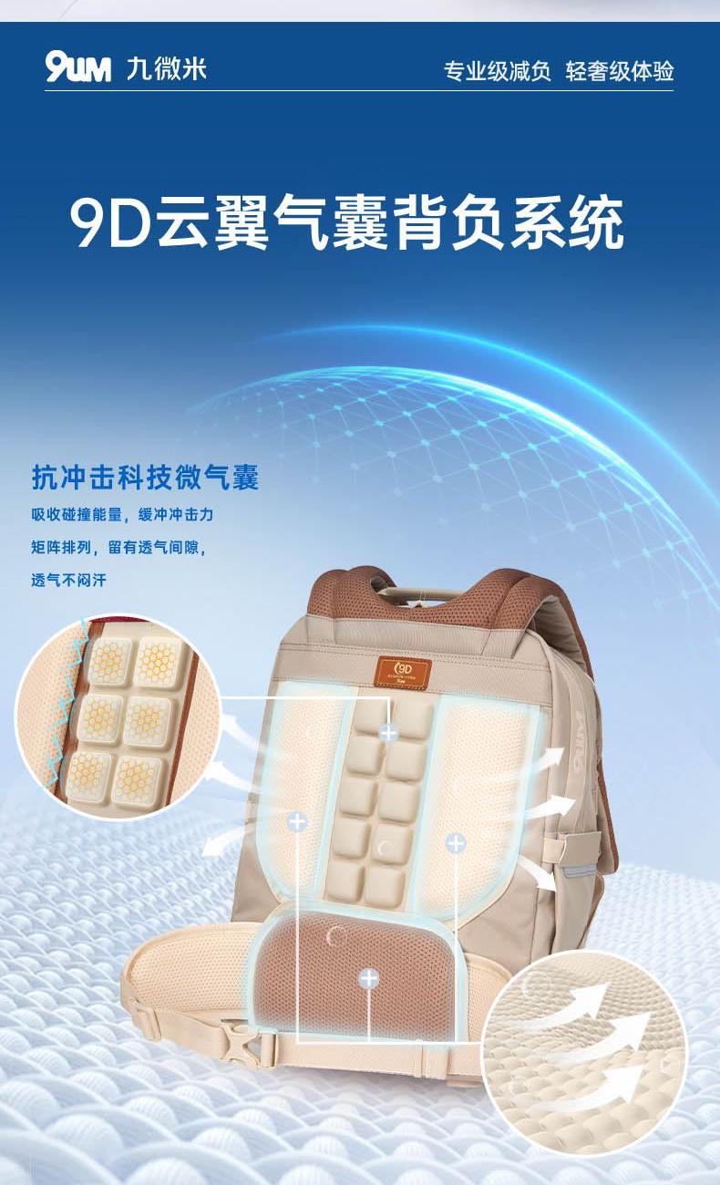 卡拉羊九微米中学生防下坠减负气囊云朵书包U5095米白