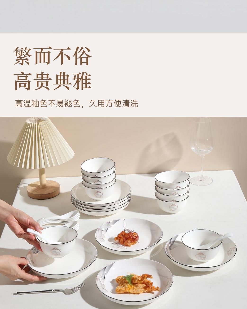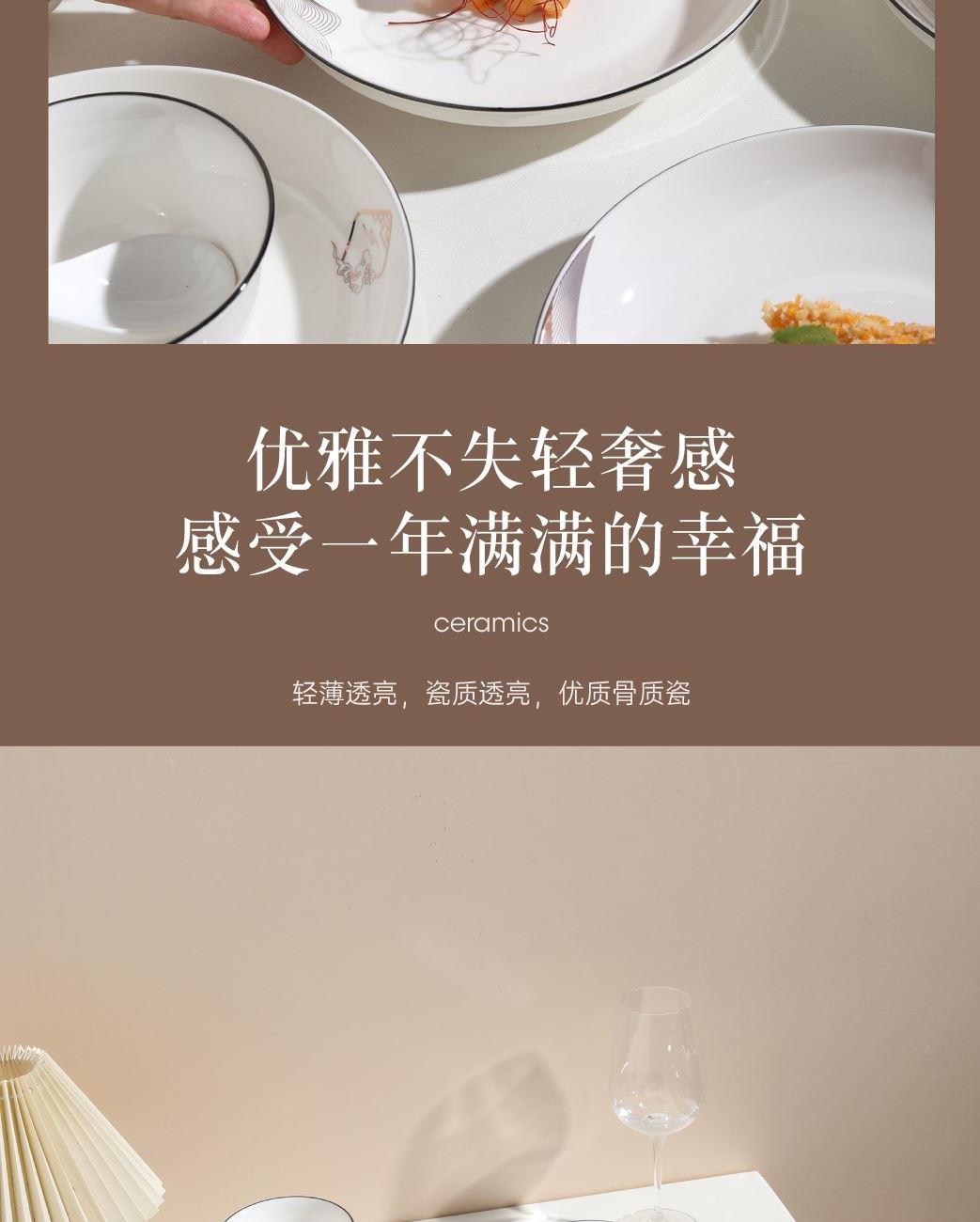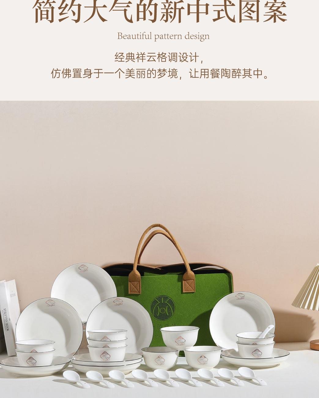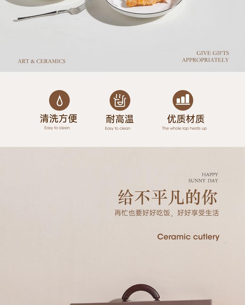 产品组成:4碗+2盘+4勺+礼盒 产品材质:高温瓷 产品工艺:印花+素烧+釉下彩 产品规格:4.5英寸碗,8英寸盘,三弯小勺 包装尺寸:48*8*28cm 外箱尺寸:53.5*49*60cm 产品特点:斯人若祥云,遇上方知有。花纸高温烧制,沿用包装设计,镀金压纹包 包造型,咖啡色与金色搭配,更有创意。瓷器采用上等瓷泥料高温烧制而成。真金花纸,有颜值有档次而不失实用性,是送礼的优佳选择。