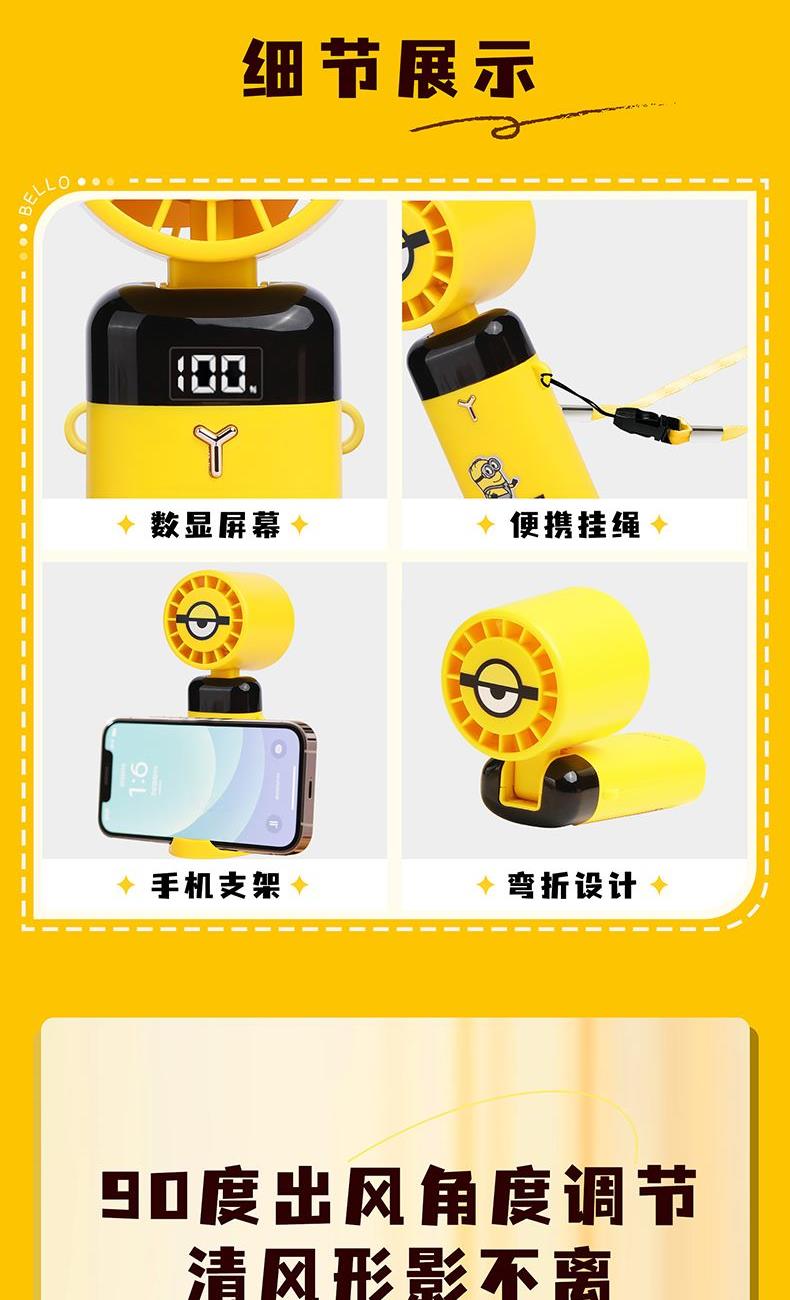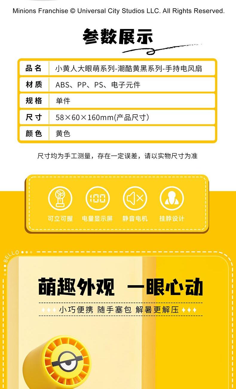 小黄人大眼萌系列-潮酷黄黑系列-手持电风扇