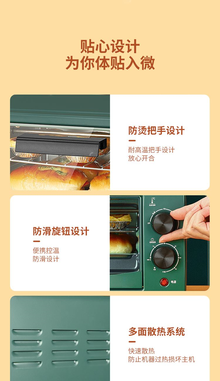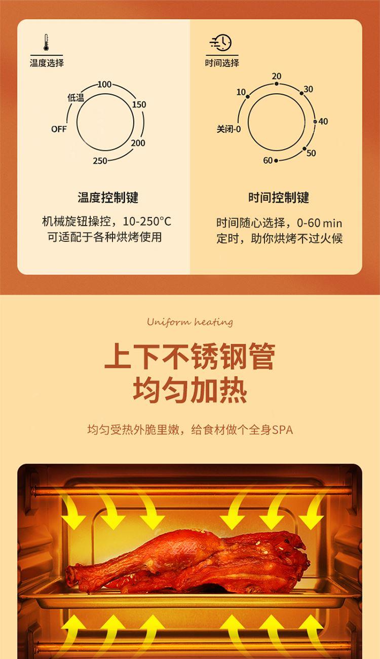 不锈钢发热管加热,升温快且受热均匀,烘焙口感更出众