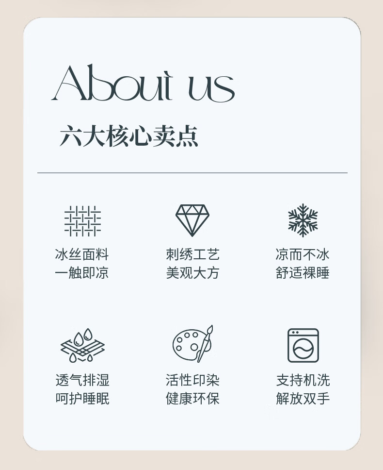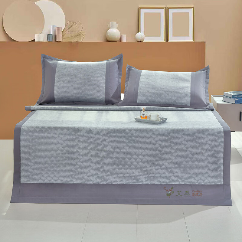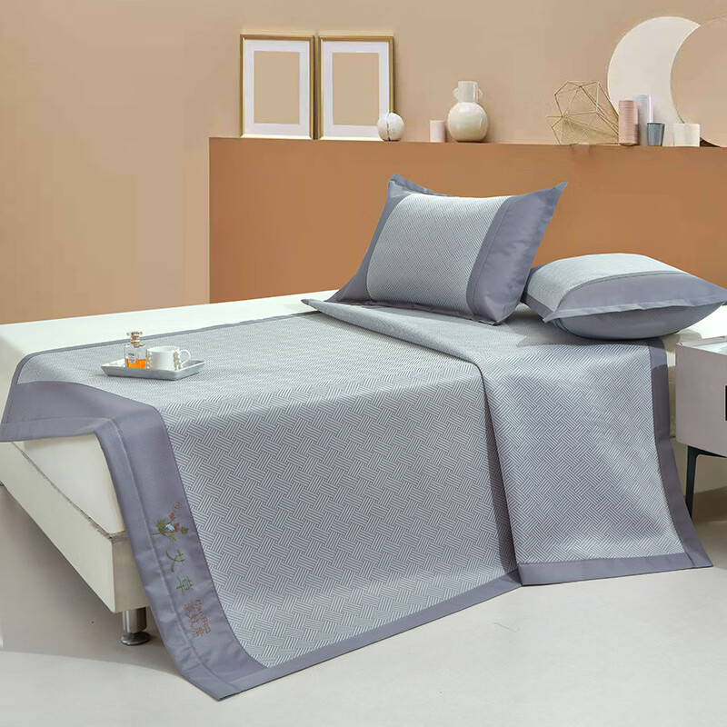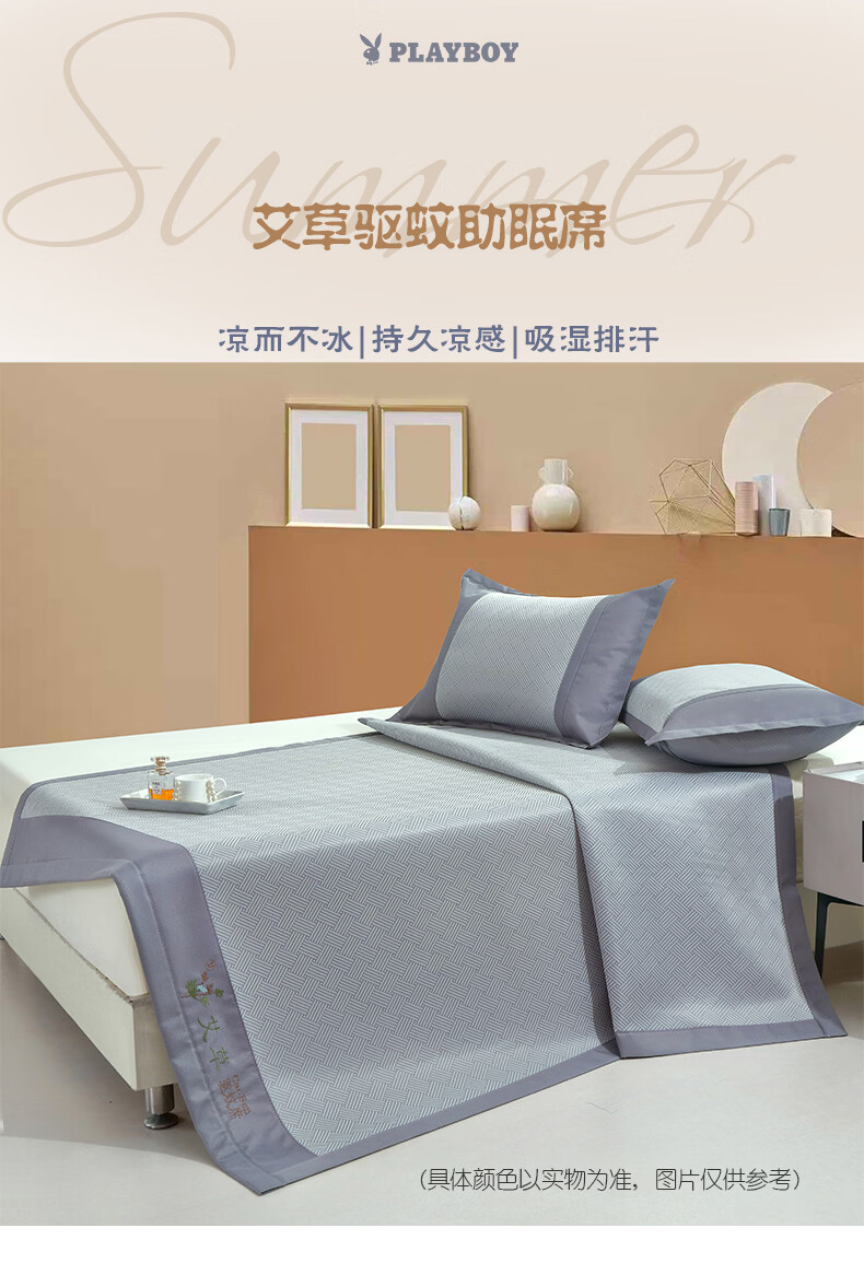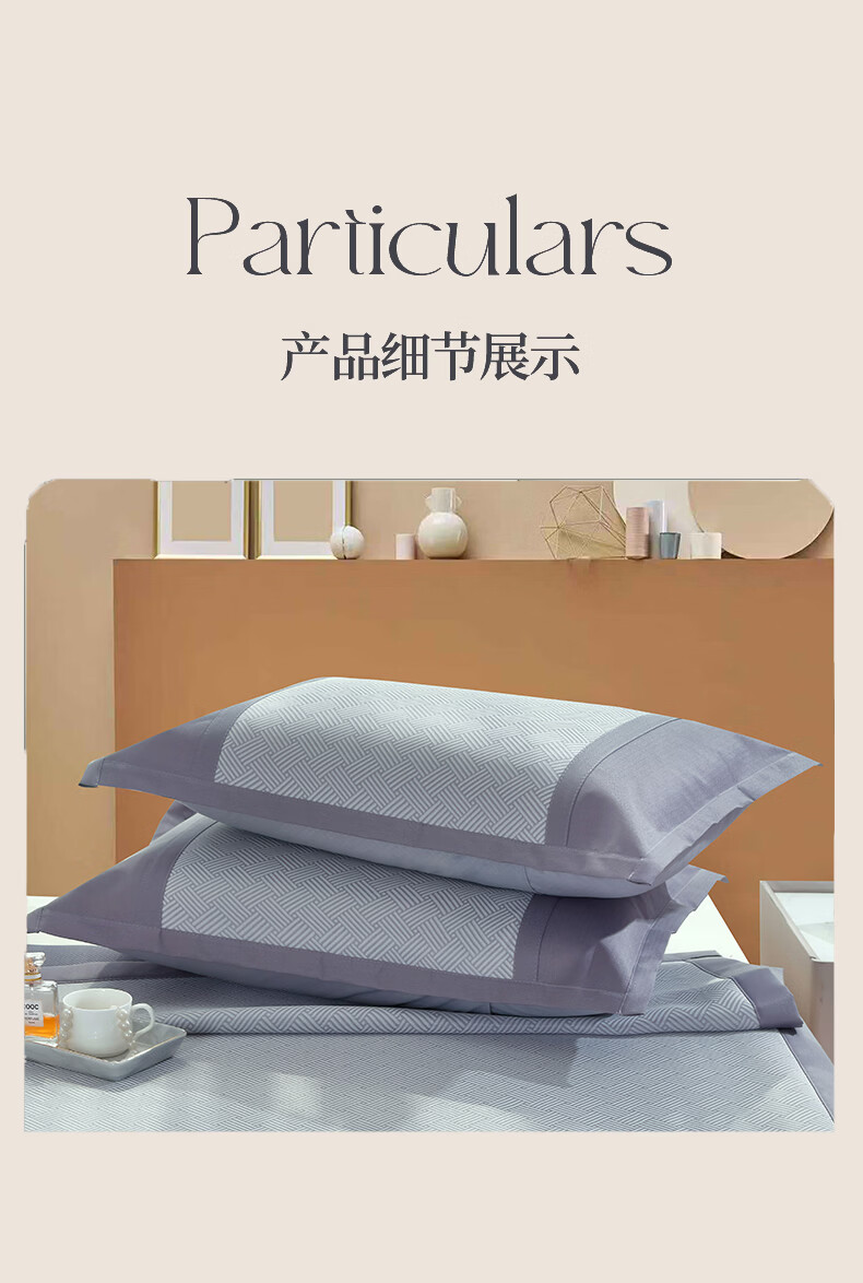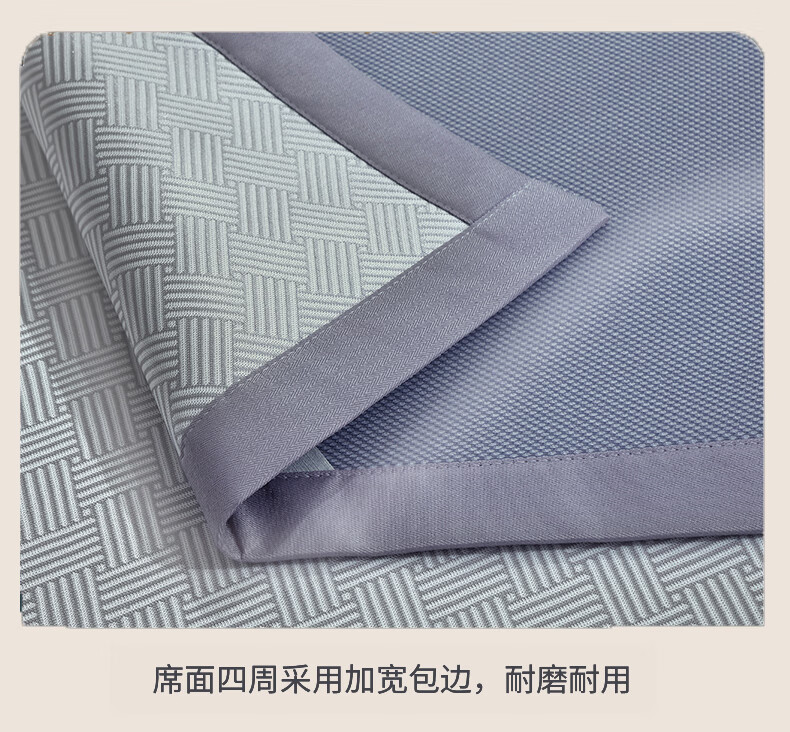 规格:180*200cm 枕套:48*74cm*2 面料:碳光冰丝 复合料:三明治 执行标准:Q/TDY 01-2016 安全类别:GB18401-2010 B类 1.高密碳光冰丝席,自然清凉,凉而不冰,久睡不粘。 2.碳光凉感冰丝纤维织物本身经过处理,可以破坏细菌的寄生环境,有效防止细菌滋生进入,切断它们的食物链,洁净卫生,适合裸睡。