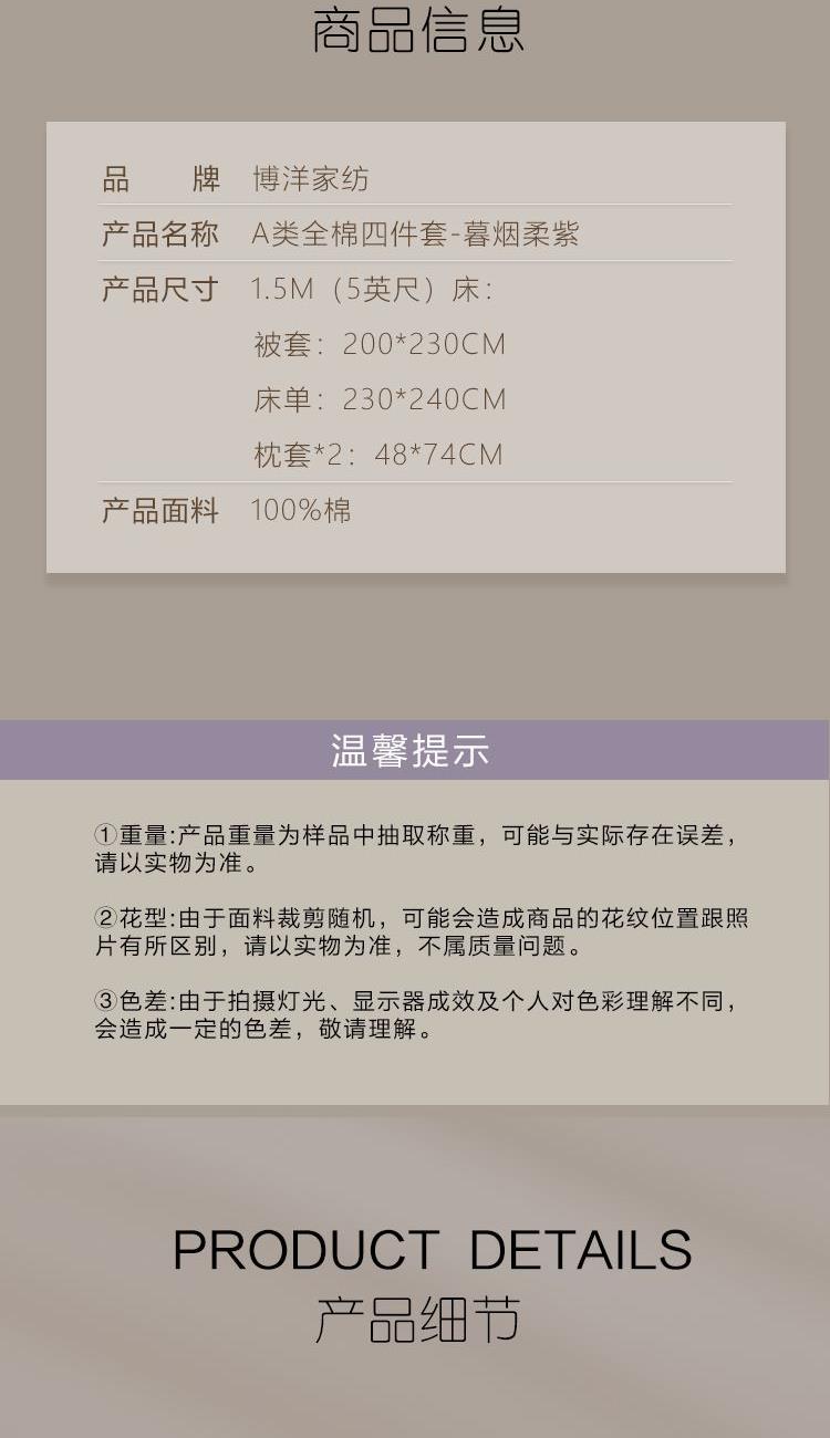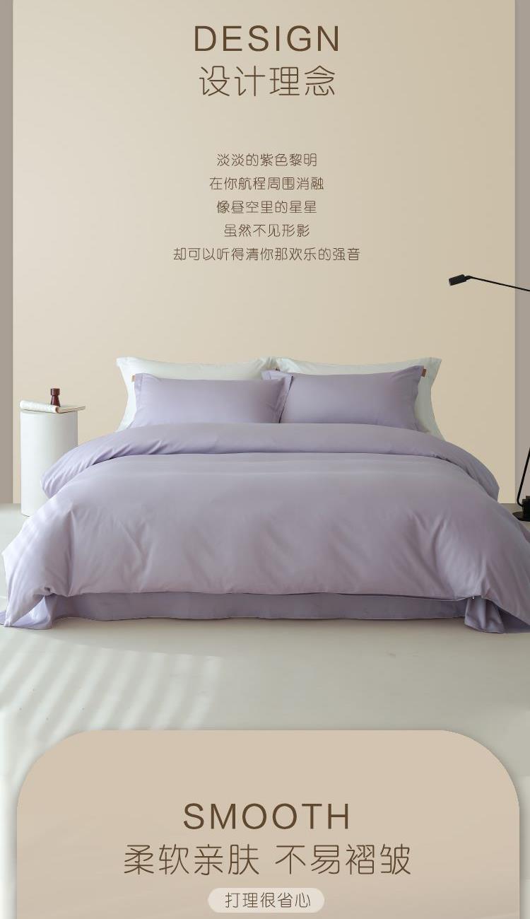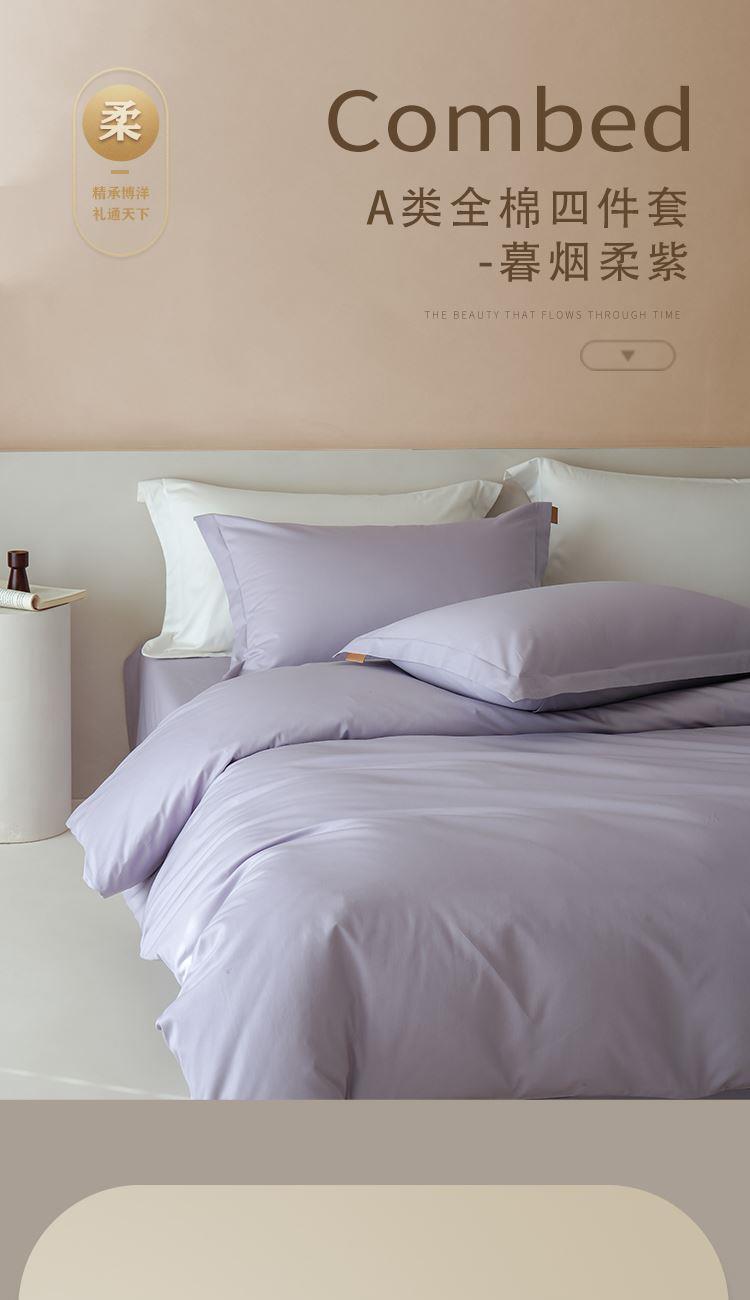 产品规格:被套:200*230cm 床单:230*230cm 枕套*2:48*74cm 产品材质:棉 1、采用精梳棉面料,用特殊工艺,软化纤维,使面料更柔软轻盈,触感温润,贴合肌肤透气性好。 2、 莫兰迪色系自带滤镜,低饱和度温柔显贵,极简设计,流畅走线勾勒轻奢气场。 3、精湛印染工艺,色牢度高,机洗方便,不易起球。解放双手,久洗如新。