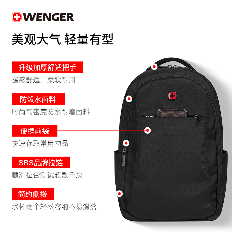 颜色:黑色 尺寸:440x315x140mm 容量:20L 净重:0.5kg 材质:涤纶(防泼水聚酯纤维) 1、科学分压,舒适负重,根据宽背+生理曲线设计,让重心更加贴近背部; 2、透气背负系统,加厚泡棉背板,保持背部干爽; 3、加宽加厚人体工学减震肩带,解放双肩压力; 4、加厚提手带,侧边口袋,调节式肩带