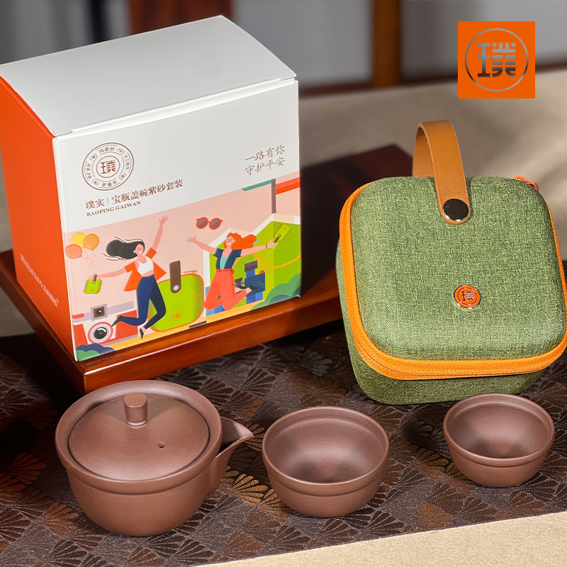 璞实·宝瓶盖碗原矿紫砂旅行两人套装便携式商务伴手礼