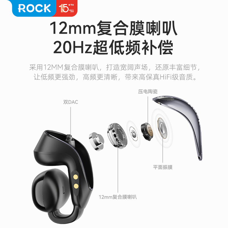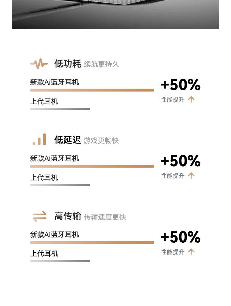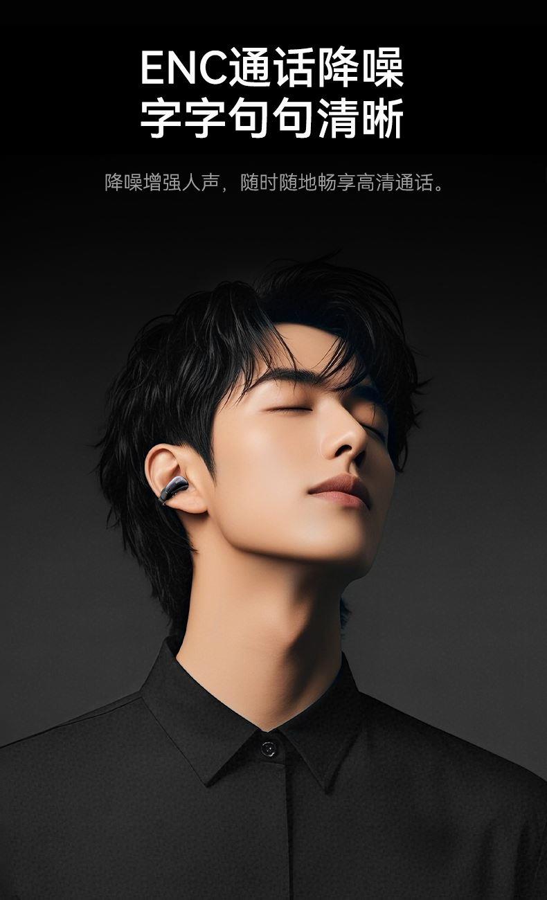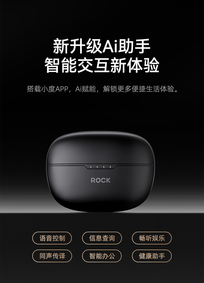 1.产品型号:RAU0785 2.蓝牙版本:蓝牙5.4 3.产品尺寸:88.13*40.30*29.10mm 4.产品重量:41g 5.充电输入接口: TYPE-C 6.输入:5V 1A 7.电池容量:聚合物电池 8.充电仓电池容量:400mAh 9.耳机电池容量:40mAh 10.充电时间:1.5H 11.续航时间:3.5-4H(单次) 20H(配合充电仓使用) 12.喇叭类型 :复合膜 13.喇叭规格: 12±0.2mm 14.频率 20~20kHz 翻译小天才,行走的百科全书,智能办公,健康助手 12mm复合膜喇叭 + 20Hz超低频补偿 ENC通话降噪,AI智能降噪算法加持