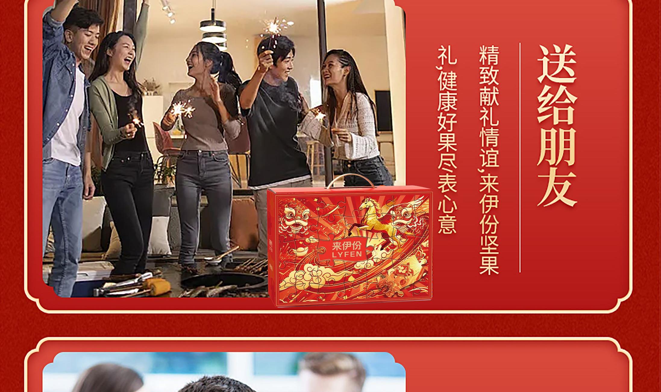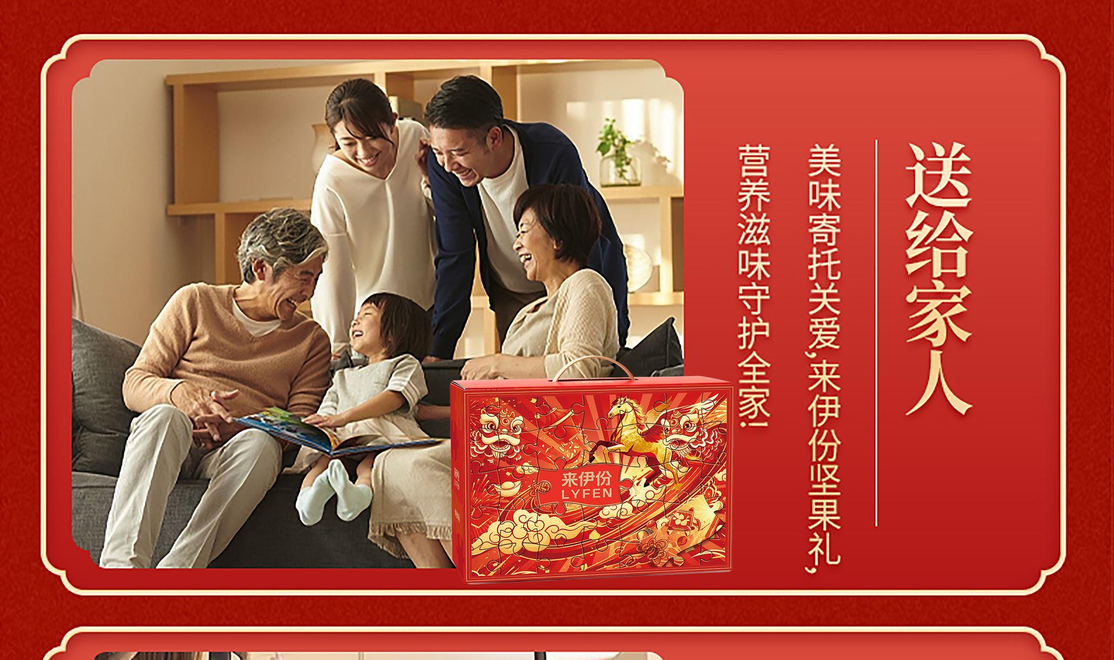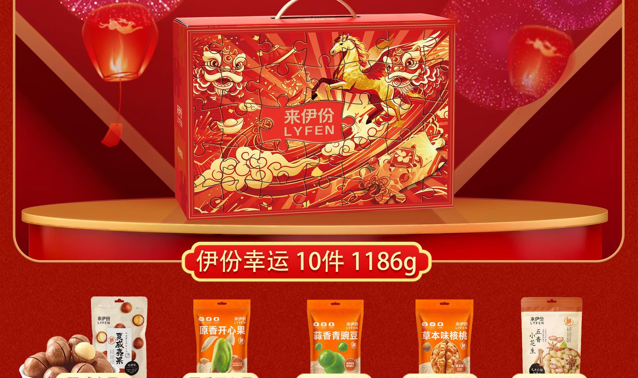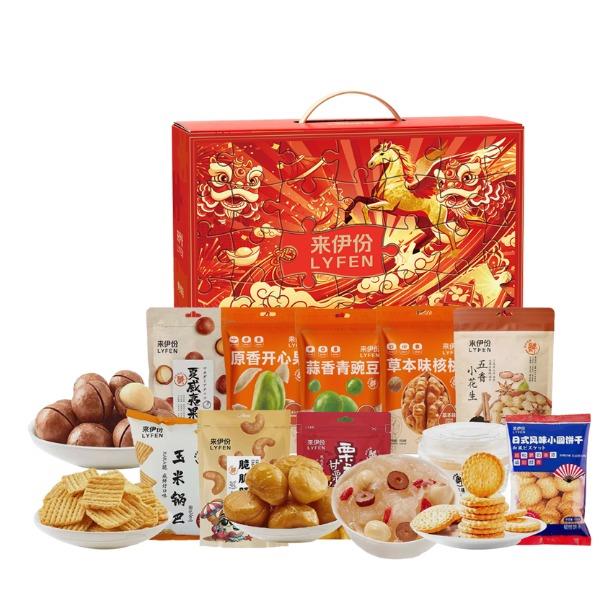 来伊份作为上市企业 产品线非常丰富,强调“新鲜”零食作为保障 产品设计贴心,方便携带 礼盒 尺寸:370*150*270mm 内容物:原香开心果50g 草本味核桃150g 夏威夷果100g 脆脆腰果100g(蟹黄味) 栗刻有甘栗仁60g 五香小花生258g 蒜香青豆148g 日式风味小圆饼干(奶盐味)100g 玉米锅巴(孜然烧烤味) 60g 红枣莲子炖银耳160g