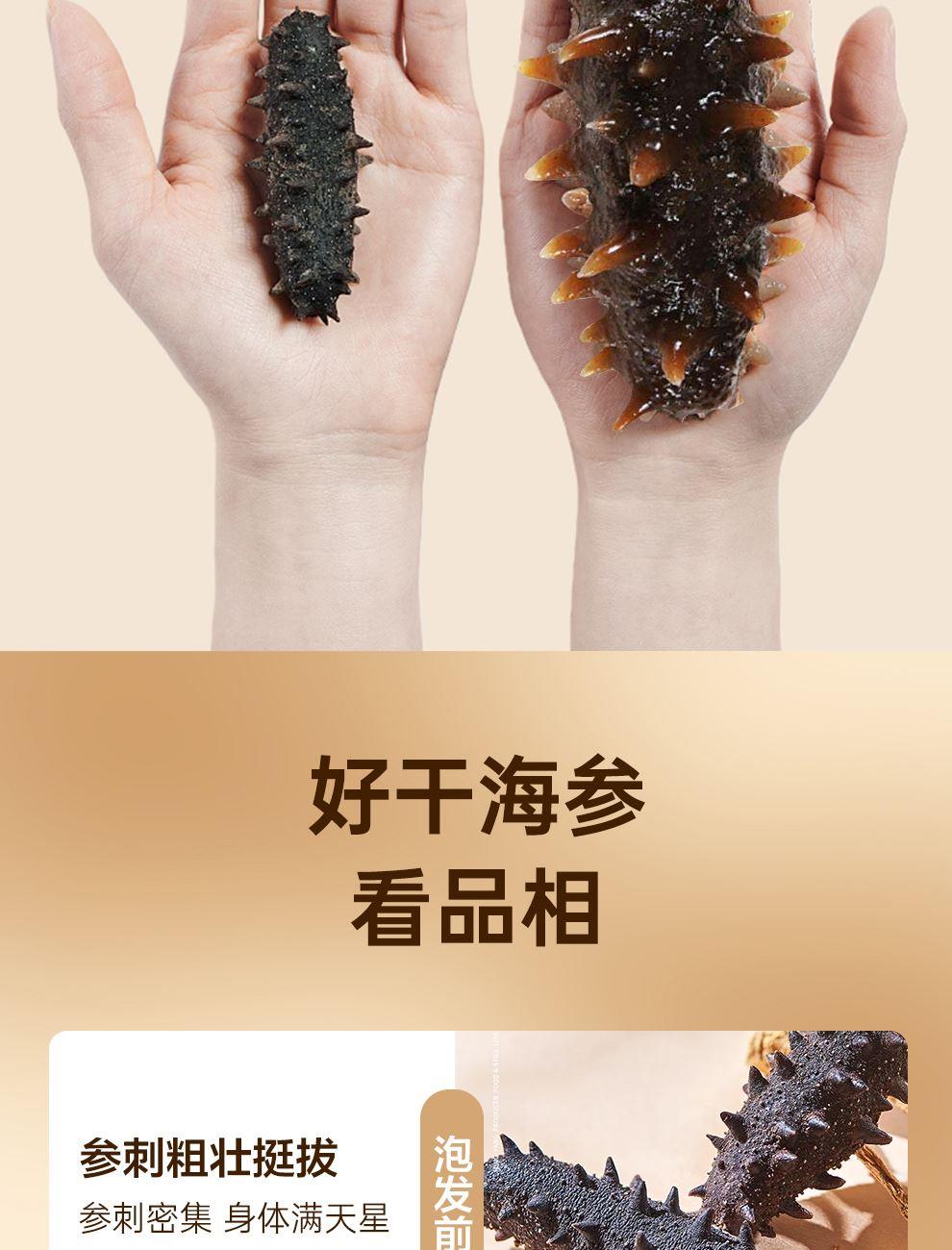 - 淡干工艺保留了海参的营养成分。通过自然晾晒或者低温烘干,减少了海参营养在加工过程中的流失。