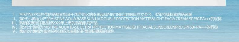 专研AIR零感膜技术,一抹速成膜,空气般轻盈无感。SPF50+肤感专研Air 零感膜技术,MISTINE独有半乳化&水油双相防晒技术润而不油 不厚重 肌肤自由呼吸告别油包水剂型的“闷”感一抹,如轻风拂面