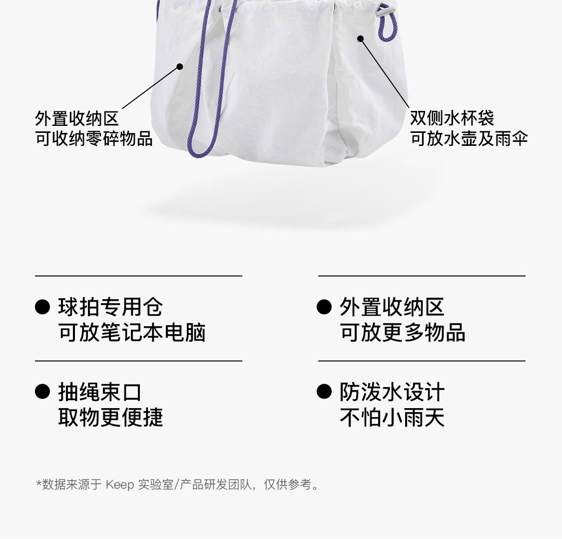 Keep多功能羽毛球双肩包简约时尚训练比赛束口背包20L