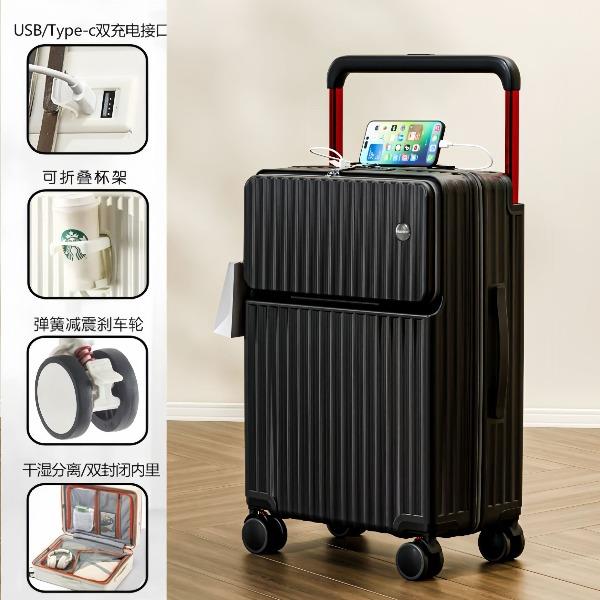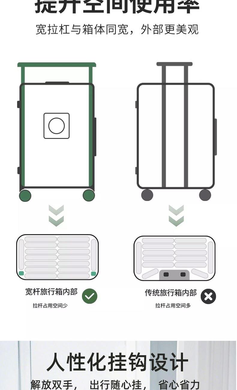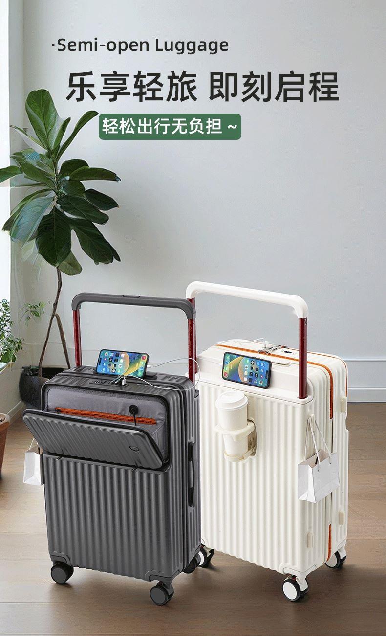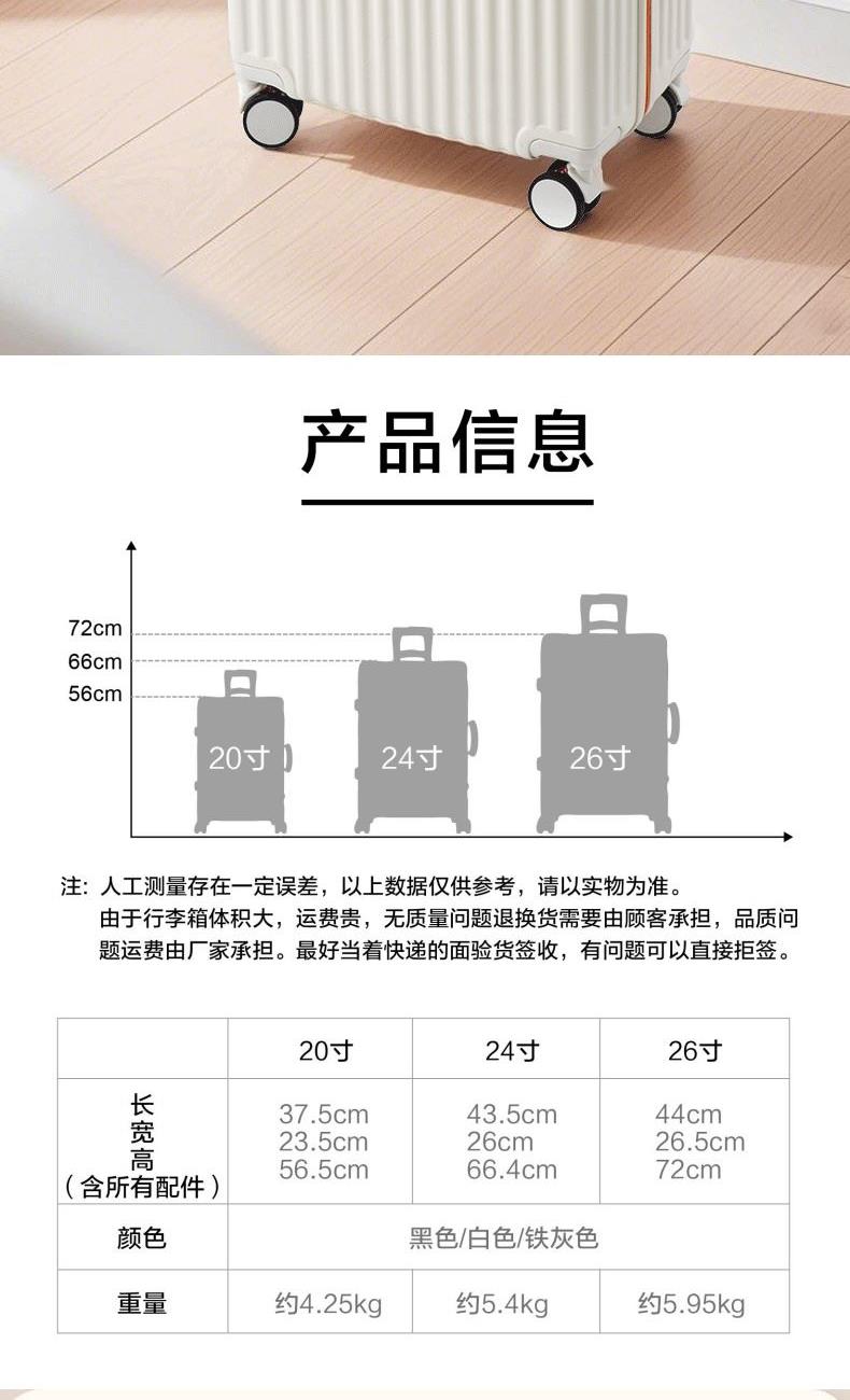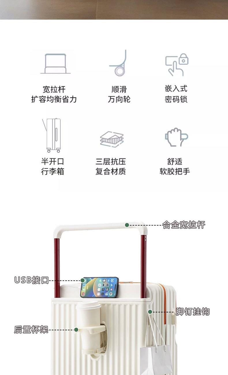 升级合金宽拉杆,受力均匀省力又稳固,后置拉杆更省空间,箱内空间使用率更高;前置开盖分区收纳出行小物更方便,后置可折叠便携杯架,咖啡、水杯、雨伞都可放这,更多隐藏功能期待你的解锁,轻音万向轮,采用高弹性TPE轮皮,畅滑省力,多路面行走不卡顿、不费劲,旅途优雅不打扰;嵌入式密码锁,安全出行有保障,大容量双封闭内衬,分区收纳更合理,轻松出行无负担~ 新疆/西藏/内蒙不发,四川凉山彝族、攀枝花市、甘孜藏族、阿坝藏族羌族运费实际收,无7天无理由退货