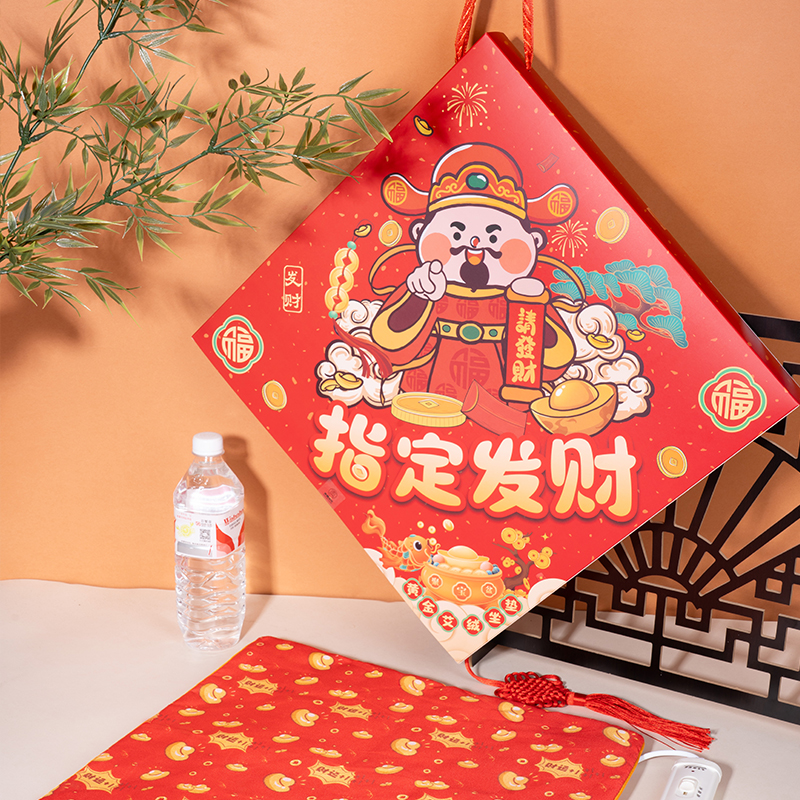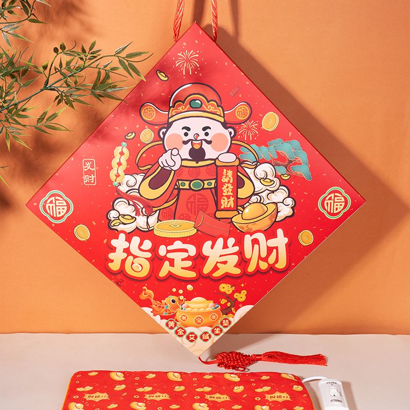 礼盒规格:420*420*45mm 产品配置:艾绒坐垫*1套(含布套、加热芯、艾绒垫、开关) 白卡菱形中国结流苏礼盒*1个 产品卖点: 1、行业首创菱形礼盒,悬挂大版中国结流苏,送礼更别致,更大气。 2、“锦鲤开运 指腚发财”,既有双重吉祥寓意,又与产品相呼应,礼盒图案可剪纸用做新年装饰。 3、经典中国红,元宝图案款和锦鲤织带款双色可选,久坐财运/锦鲤常伴,增加人体和环境能量场,提升运势,开启好运模式。 4、电热温灸艾绒坐垫,热疗加艾灸,排湿除寒,疏经通络,改善亚健康。 5、人生无需太卷,坐下即是养生。