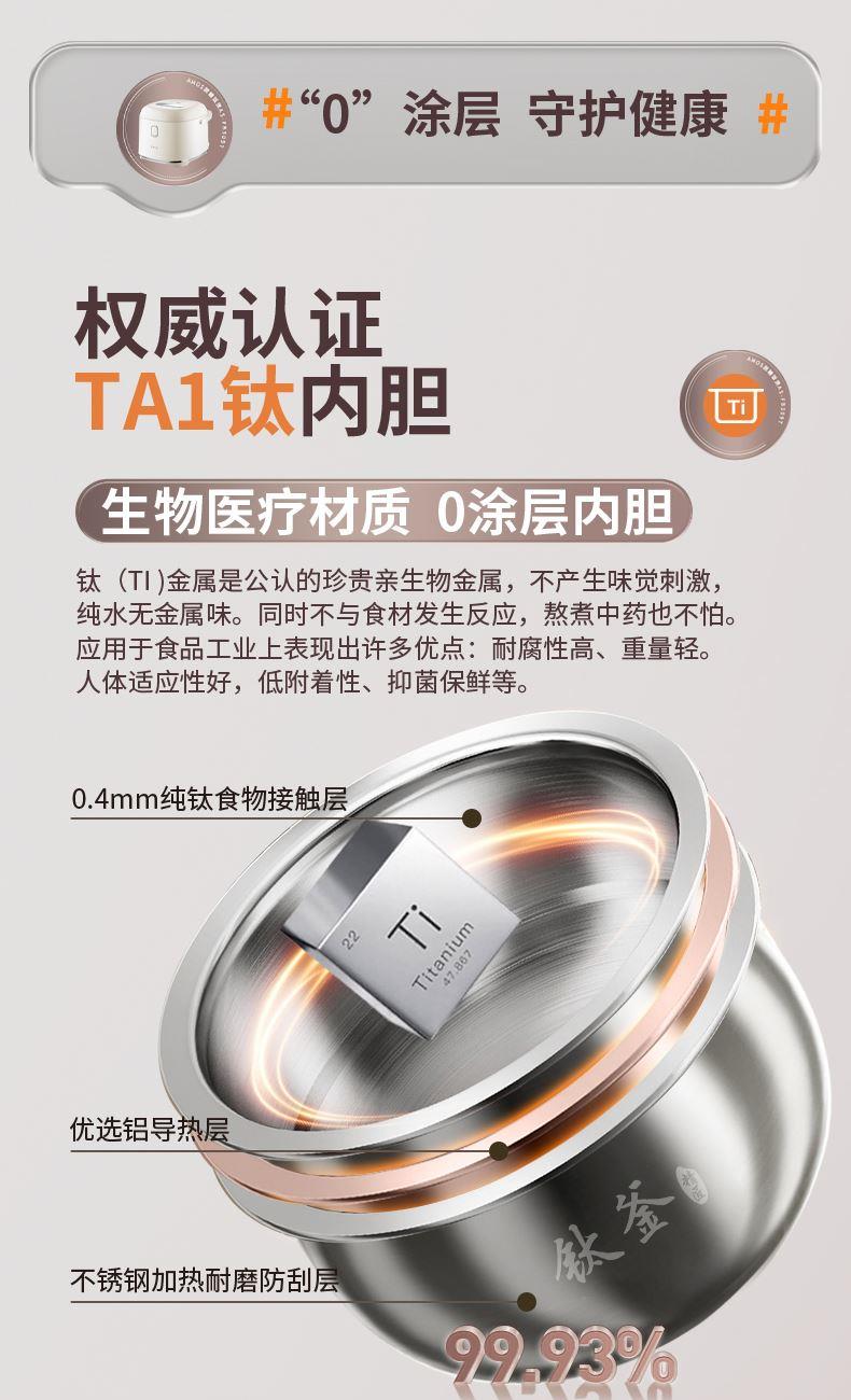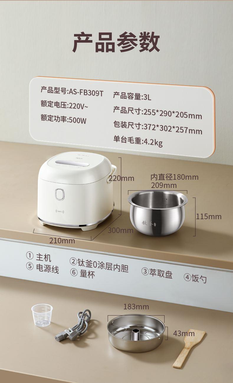 亚摩斯纯钛内胆3L钛釜低糖电饭煲AS-FB309T
