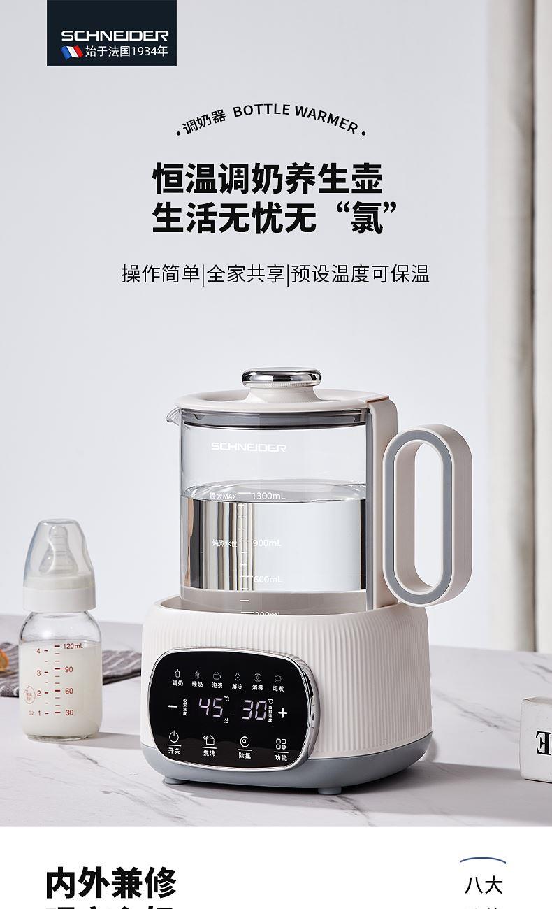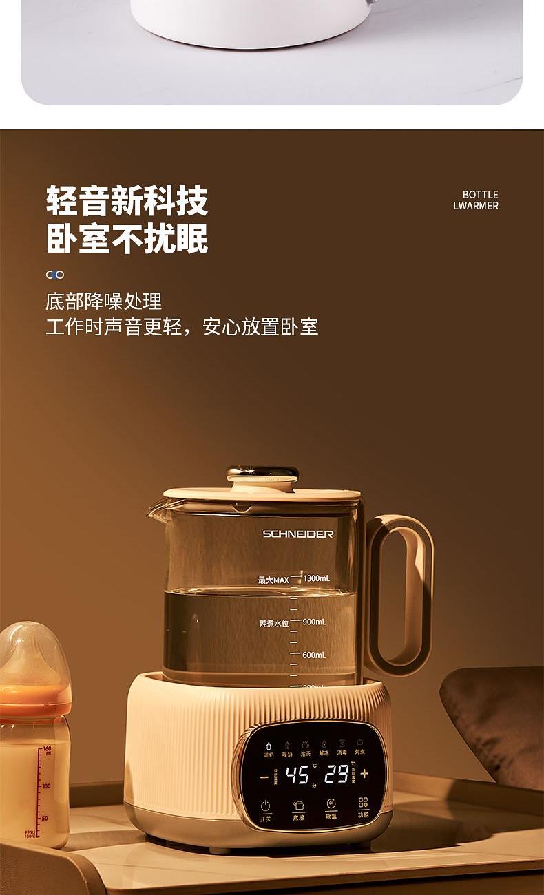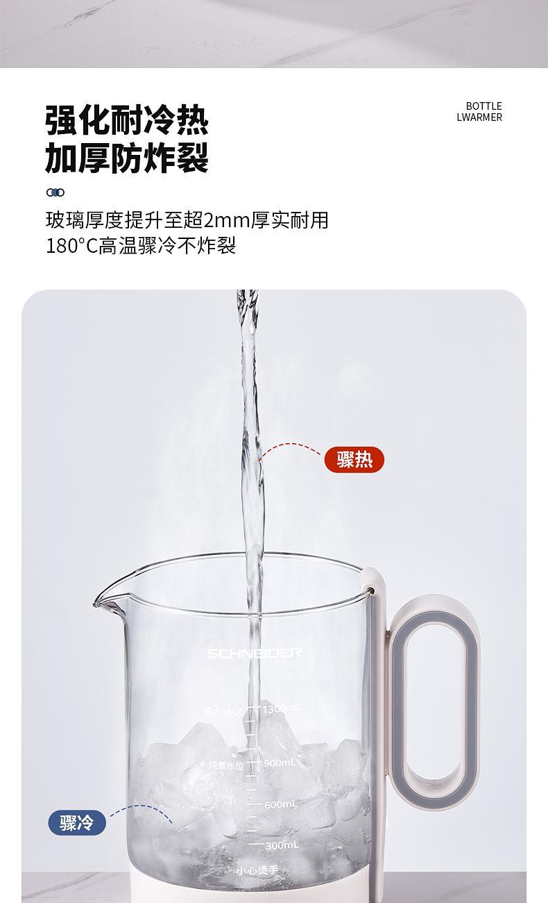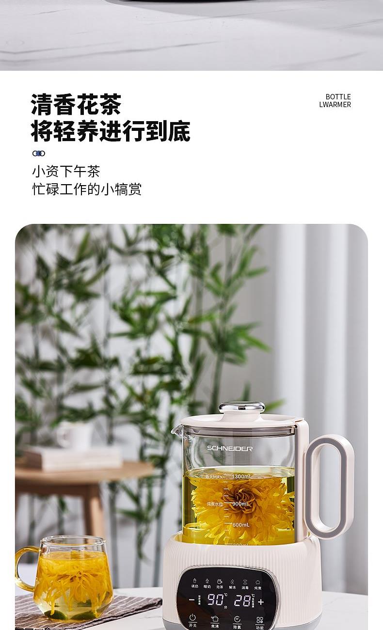 产品颜色:月光白 产品材质:pp+高硼硅玻璃 额定电压:220V~ 额定频率:50Hz 额定功率:600W 额定容量:1.3L 单台净重:1.15kg 单台毛重:1.25kg 产品尺寸:215*175*248mm 内箱尺寸:210*210*290mm 外箱尺寸:650*440*630mm 产品清单:主机*1/底座*1/说明书*1 316不锈钢发热盘 ,告别清洗烦恼 智能触控面板,温度实时显示 提壶记忆,防干烧断电保护 多功能多温度段调节 一键煮沸除氯 72小时恒温