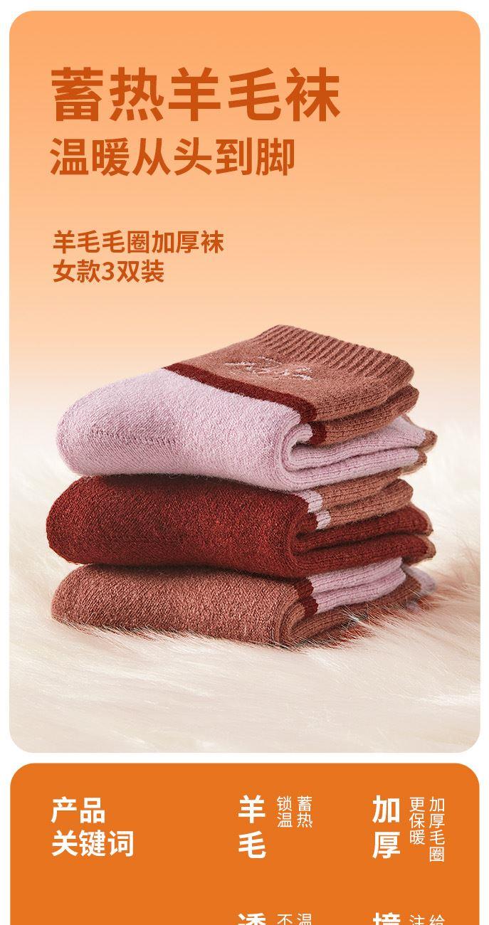 恒源祥羊毛毛圈加厚袜女款3双装HYX067WZ