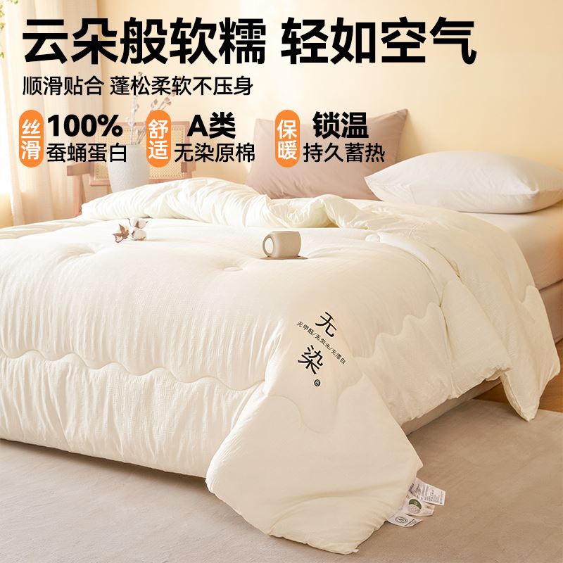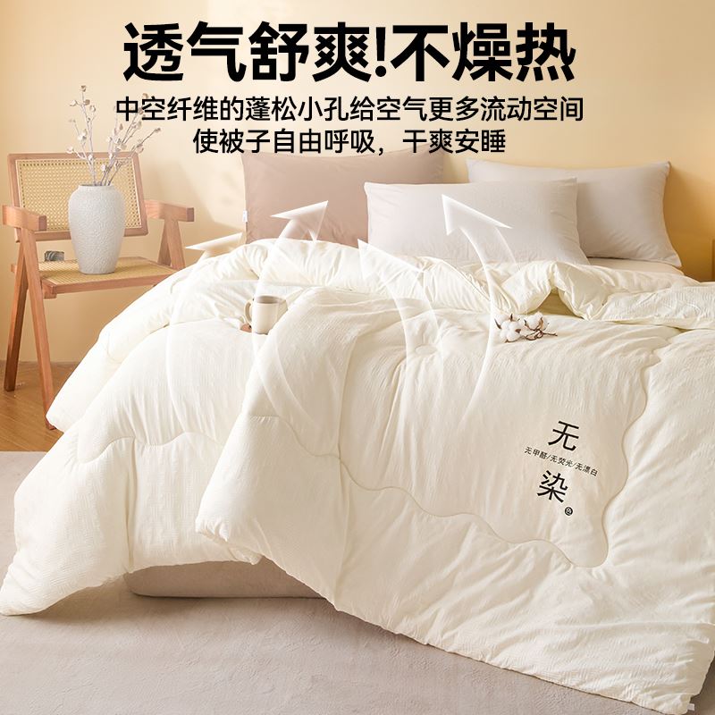 1“裸睡级被芯 柔软亲肤 适合全家适用 2:无染原棉面料 超柔无染原棉面料, 尺寸:200*230cm6斤 包装:彩盒