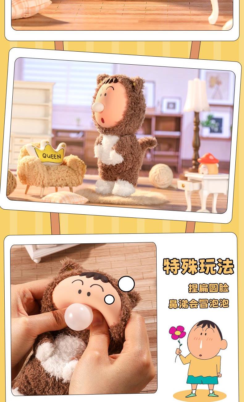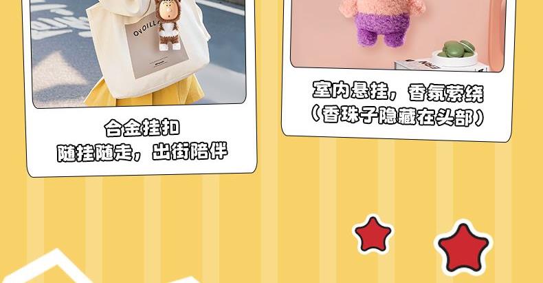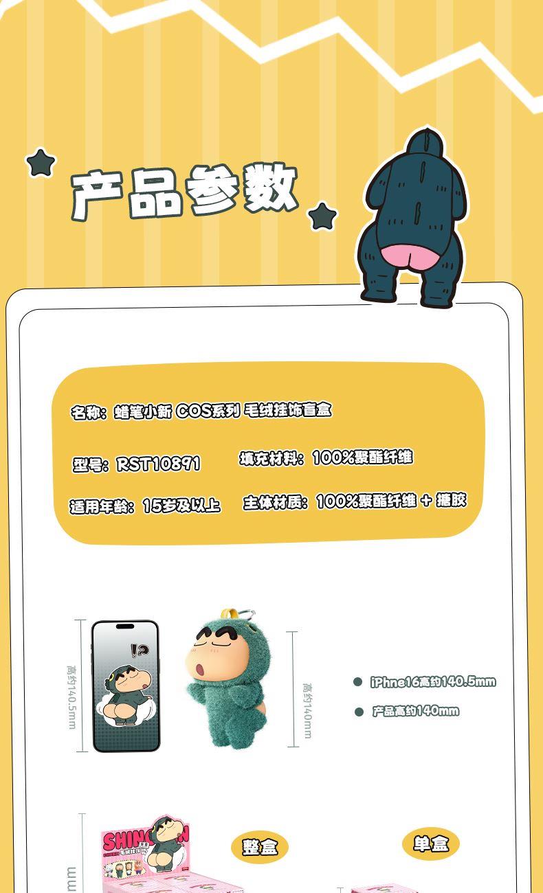 填充材料:百分之百聚酯纤维 适用年龄:15岁及以上 主体材质:百分之百聚酯纤维+搪胶 产品尺寸:产品高约140mm(iPhone16高约140.5mm) 亲肤材质,立体五官,超好rua,合金挂扣,随挂随走 香香左卫门(粉色):头部内置香囊,释放淡雅清香 鼻涕泡猫咪(棕色):捏扁圆脸,鼻涕会冒泡泡 光屁屁怪兽(绿色):QQ弹弹软屁股,超好rua~ 哔哔叫熊猫(白色):捏捏熊猫头,可以哔哔叫