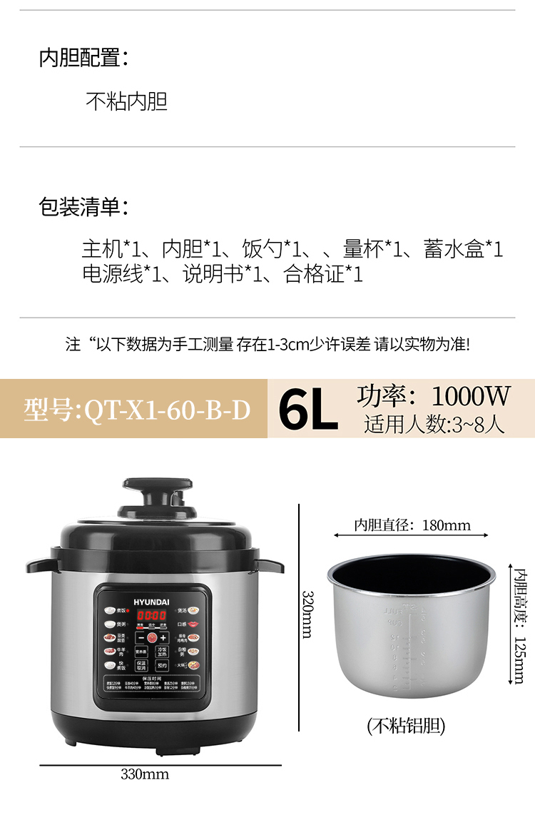 • HYUNDAI电压力锅QT-X1-60-B-D