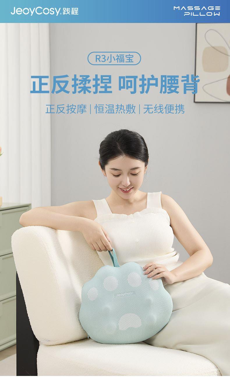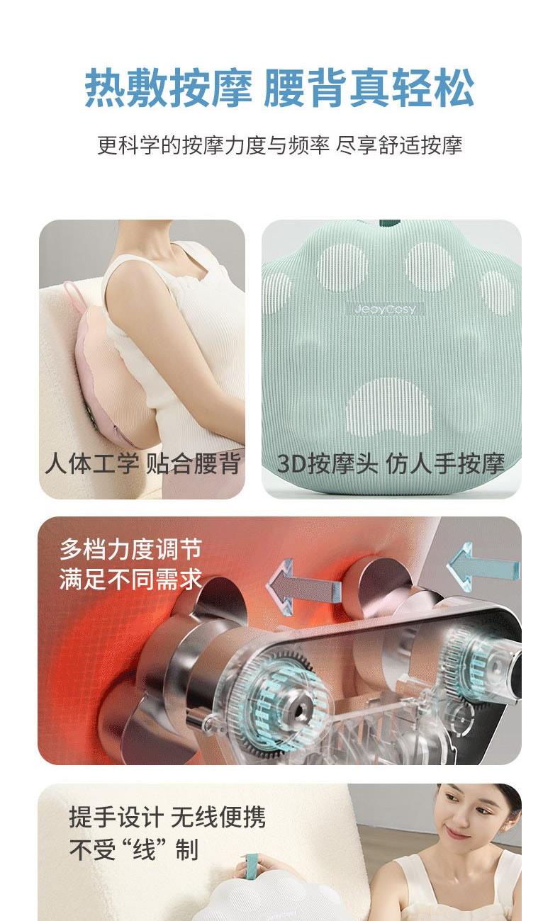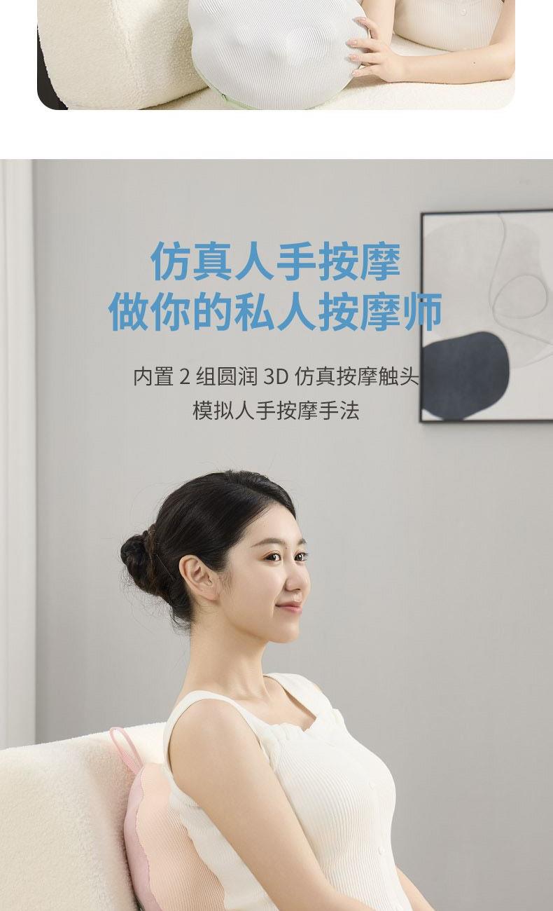 1、一键启动,三档力度,正反揉捏按摩腰背。