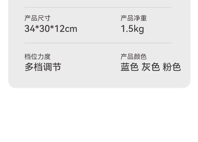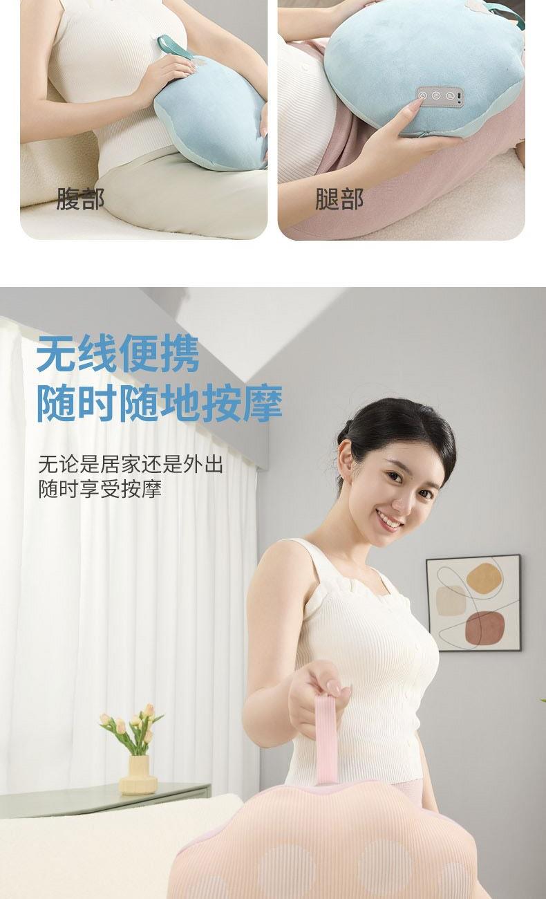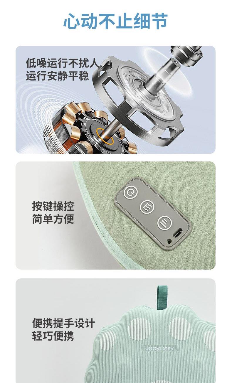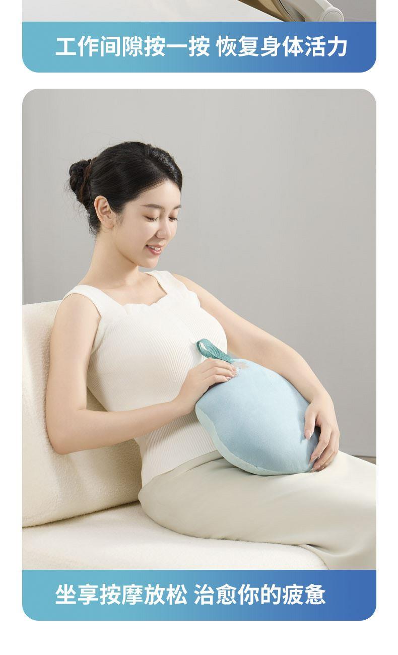 1、一键启动,三档力度,正反揉捏按摩腰背。