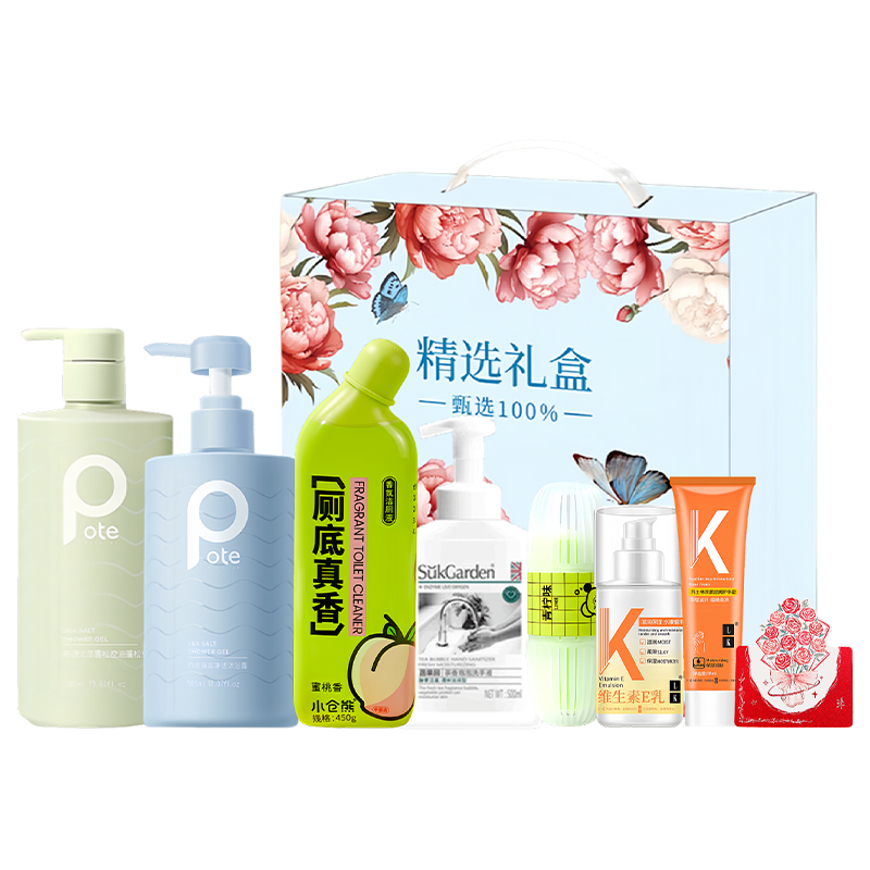 1. 柏缇氨基酸北非雪松洗发露580ml 2. 柏缇氨基酸海盐净澈沐浴液580ml 3. SukGarden蔬果园茶香泡泡洗手液500ml 4. 小仓熊香氛洁厕液(蜜桃香)450g 5. 小仓熊马桶挂篮(单个装)50g 6. LK 维生素E乳液100g 7. LK 凡士林深层滋润护手霜 80g 8. 立体玫瑰花贺卡(赠) 9. 全球臻选精美礼盒-JXLH007