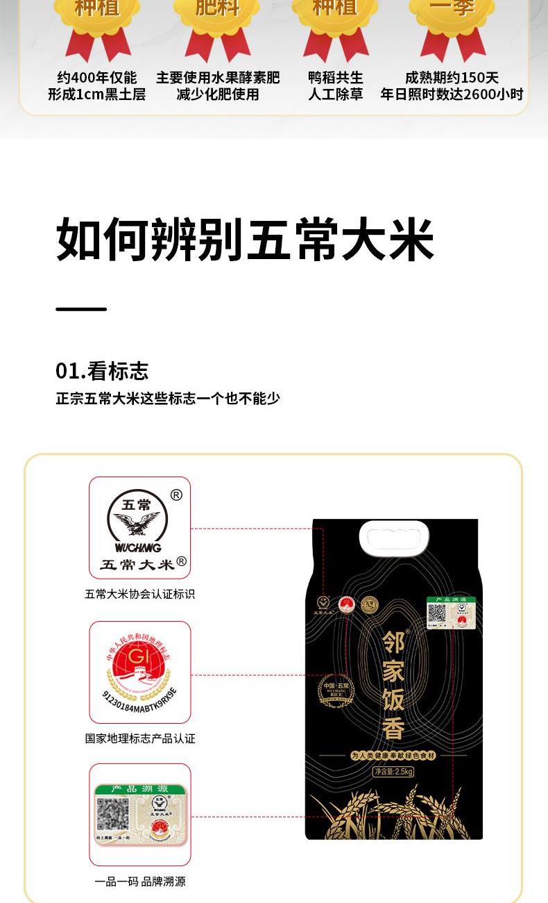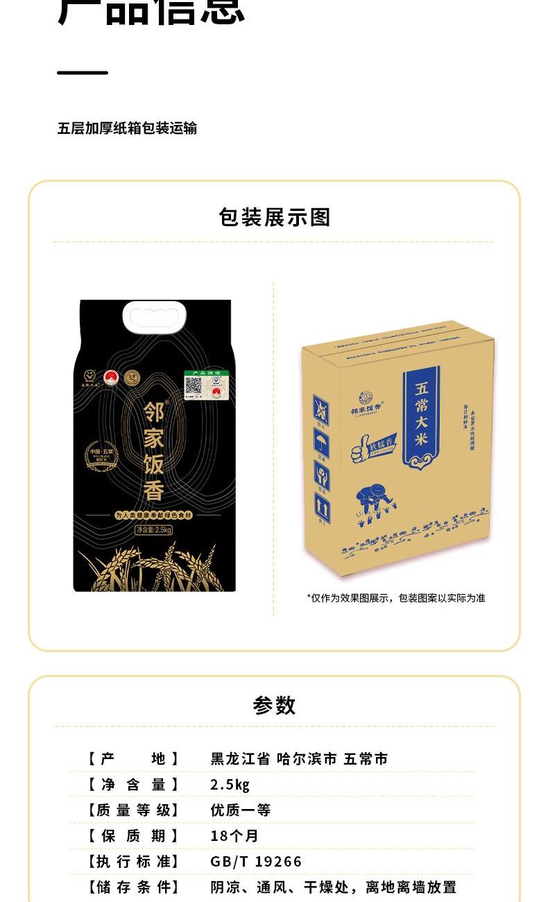 邻家饭香核心产区五常大米2.5kg/袋真空双层LJFX78