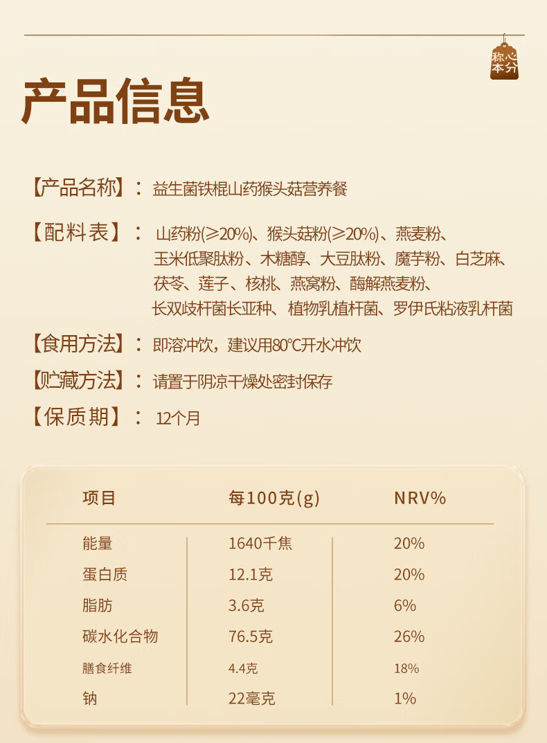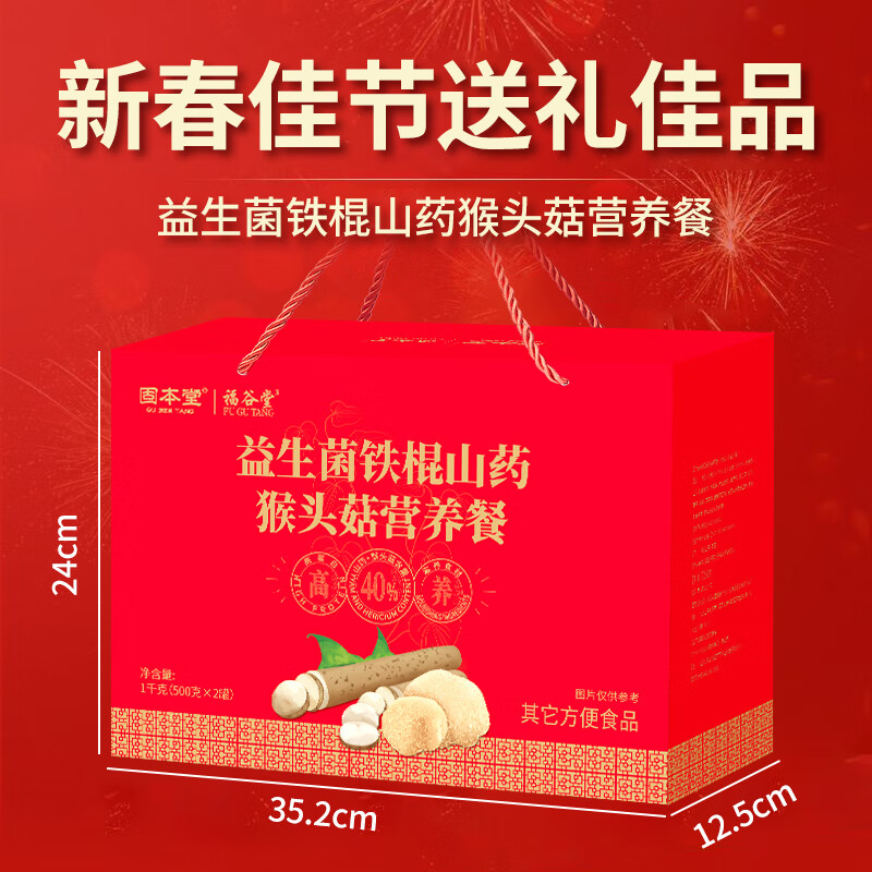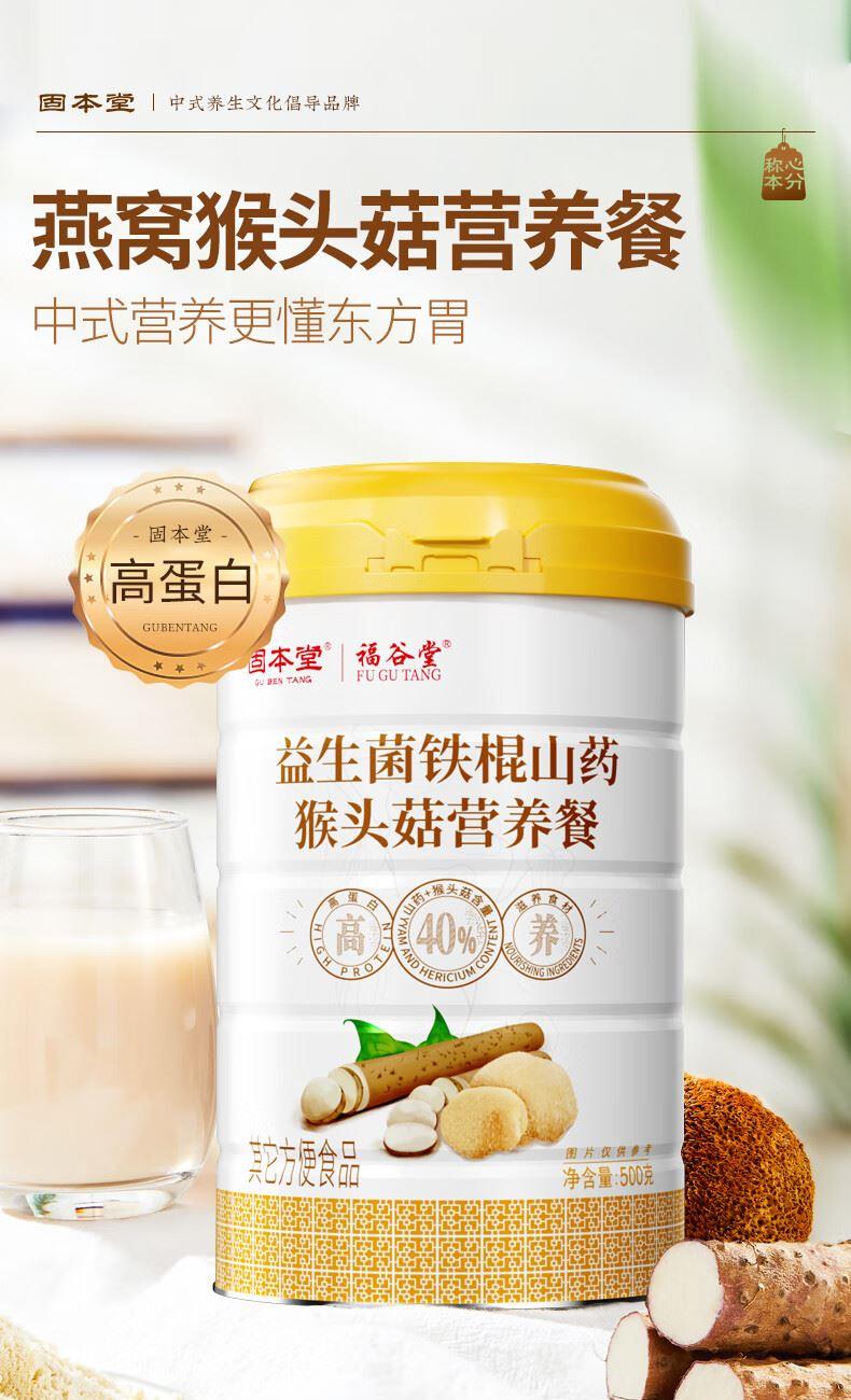 固本堂 益生菌铁棍山药猴头菇营养餐1000克礼盒装(500克*2) 6973700380922 1000克 1.61