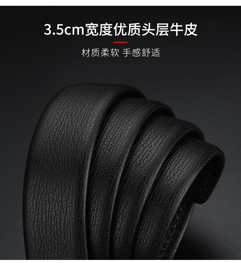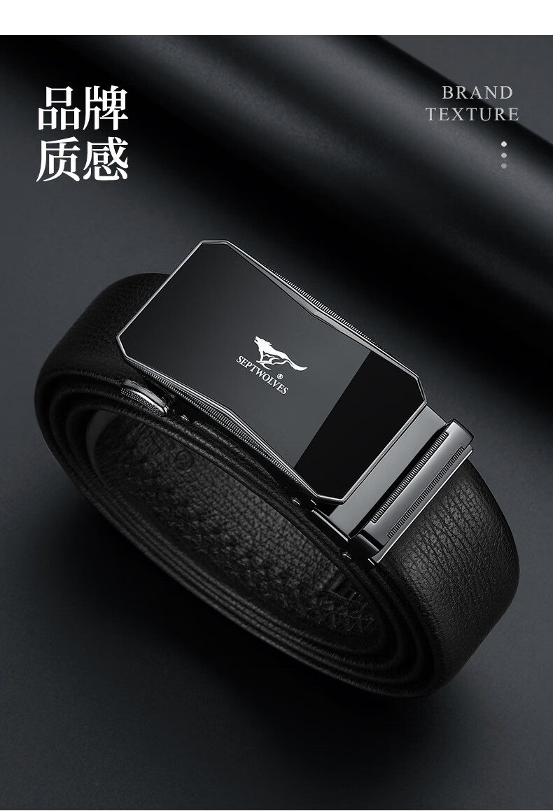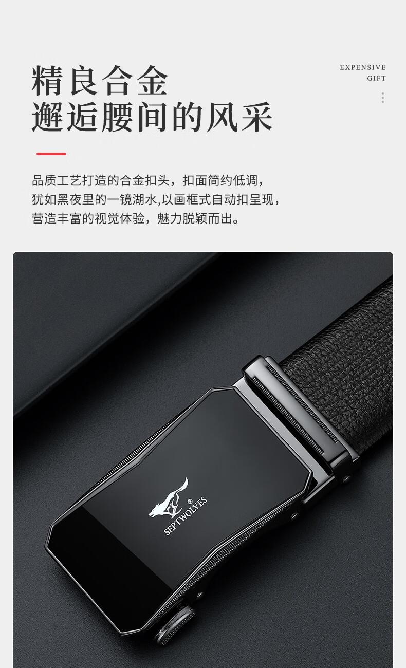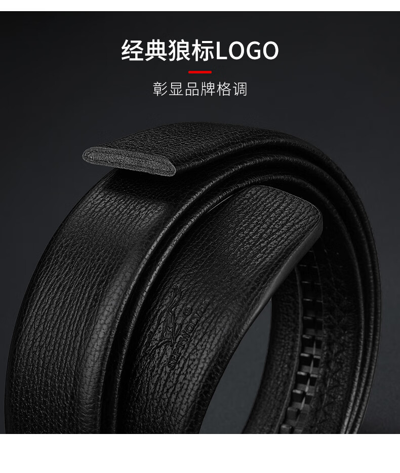 工艺:光面 带扣:自动扣 主体材质:头层牛皮 带扣材质:合金 风格:通勤风 商务风 宽度:3.5CM 送爱人,送长辈,送男士 时尚设计扣头,经典个性,简约百搭,磨砂背扣,材质柔软,手感舒适,经典狼标LOGO 代写贺卡,传递心声,精美礼盒,送礼佳品