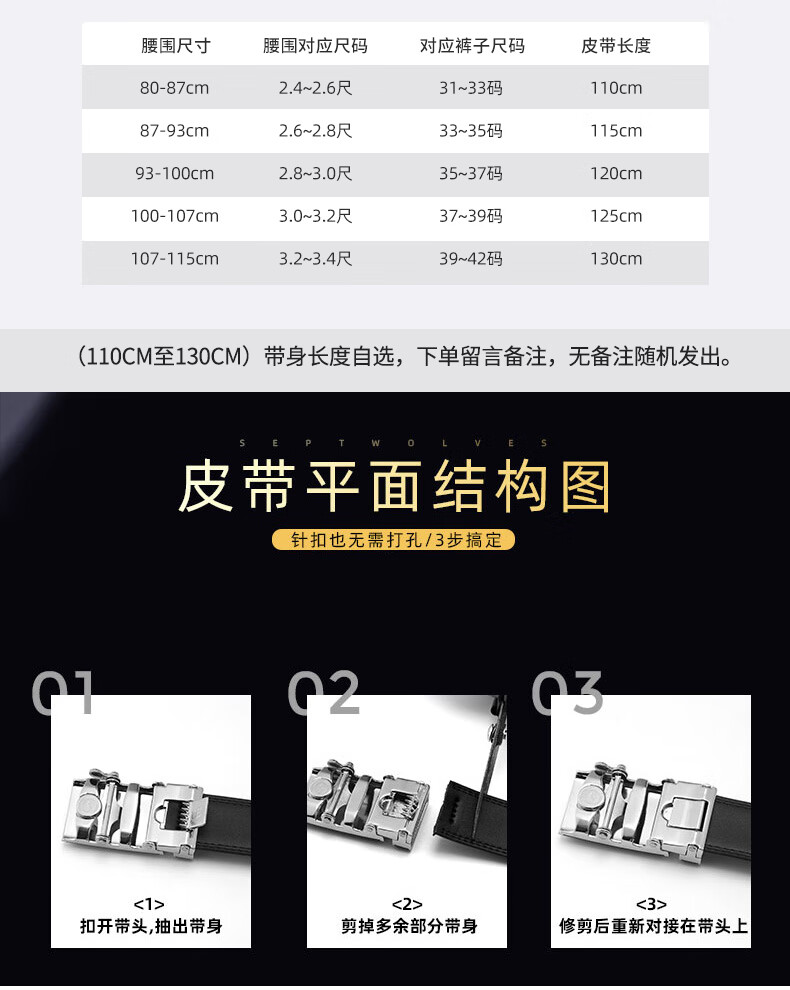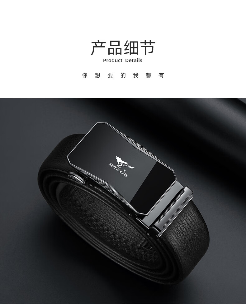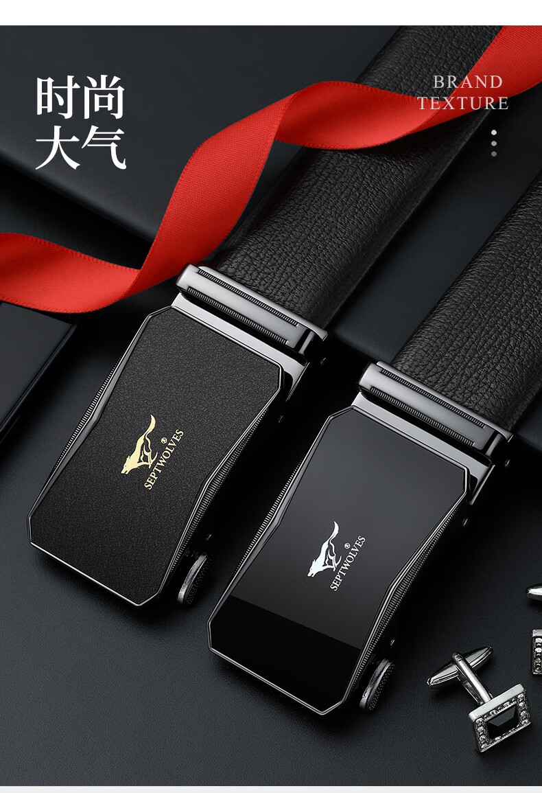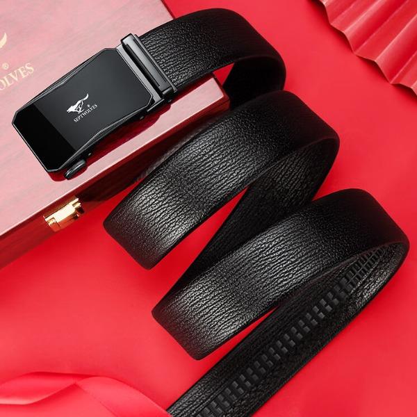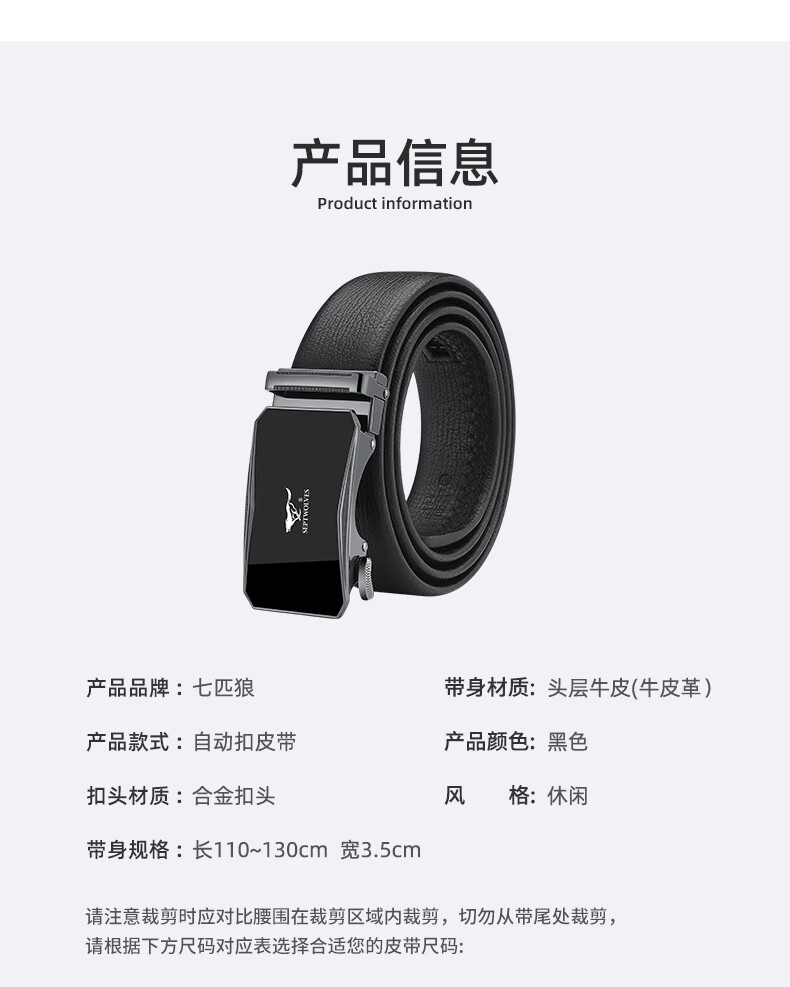 工艺:光面 带扣:自动扣 主体材质:头层牛皮 带扣材质:合金 风格:通勤风 商务风 宽度:3.5CM 送爱人,送长辈,送男士 时尚设计扣头,经典个性,简约百搭,磨砂背扣,材质柔软,手感舒适,经典狼标LOGO 代写贺卡,传递心声,精美礼盒,送礼佳品