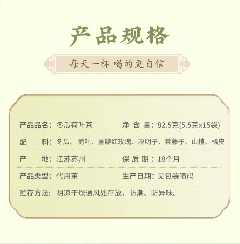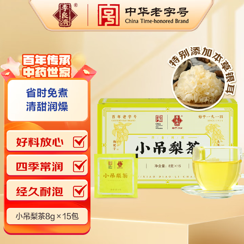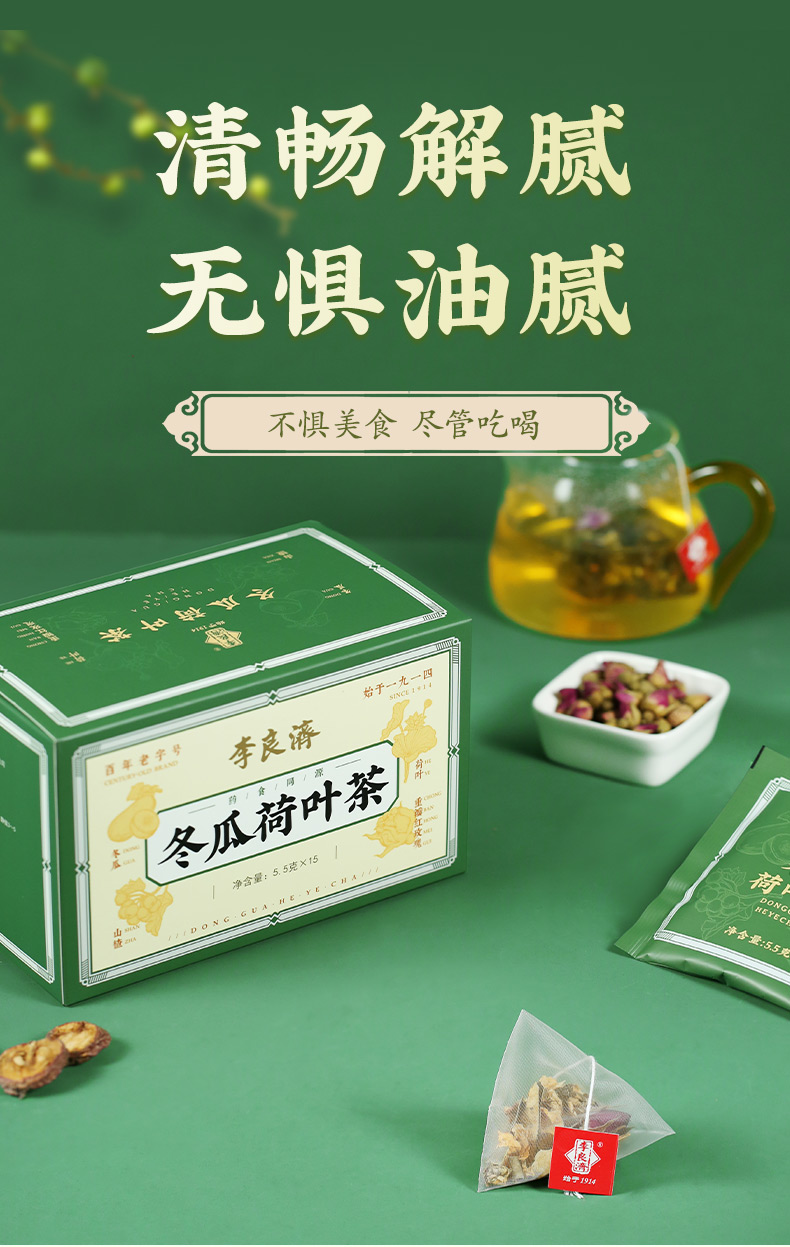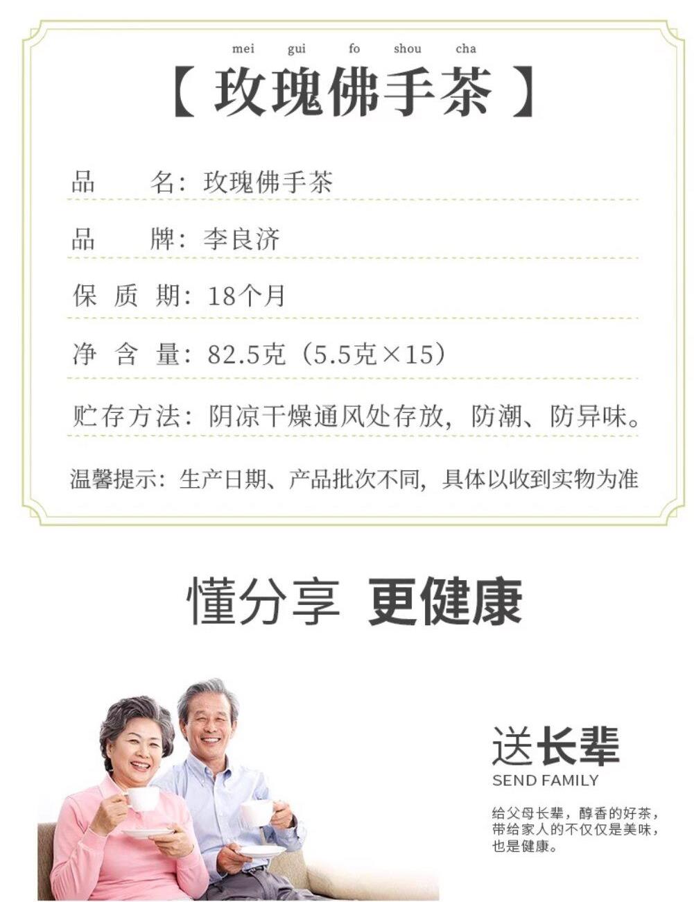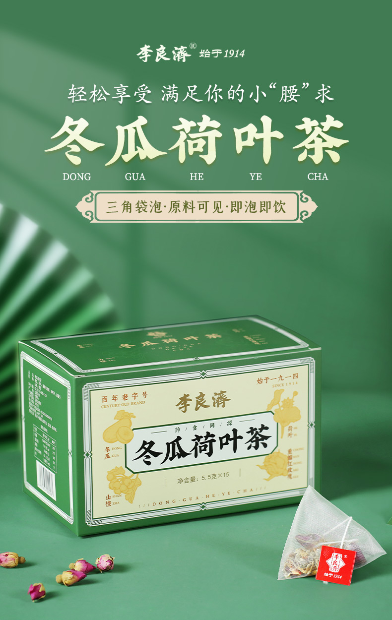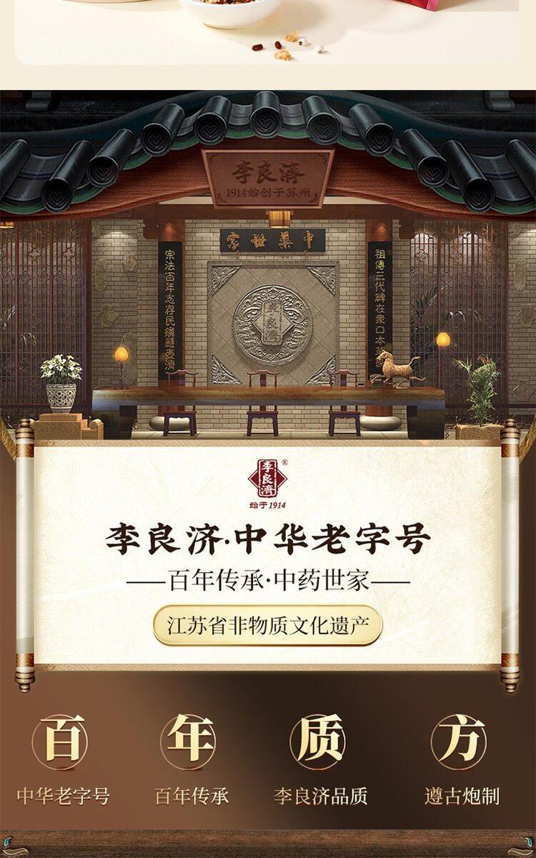 产品:李良济茶饮礼盒B款 规格:净含量285克 产品:冬瓜荷叶茶(5.5g*15)+小吊梨茶(8g*15袋)+玫瑰佛手茶(5.5g*15) 保质量:24个月 贮藏方法:阴凉干燥通风处存放,防潮,防异味 多款膏方可供选择 礼盒包装,送礼佳选