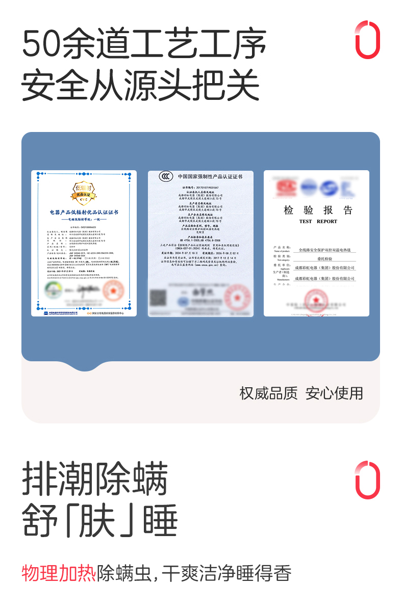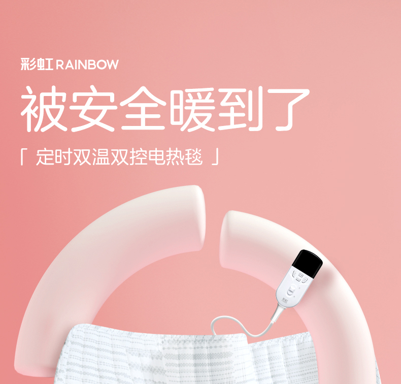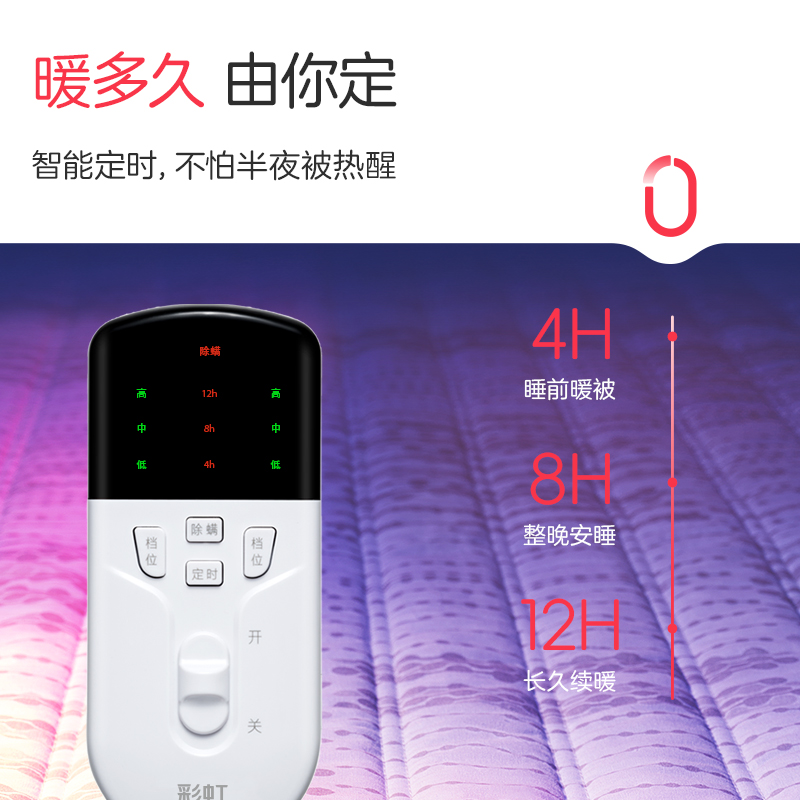 彩红1588双控双温定时除螨单面纯棉双人电热毯2*1.8米