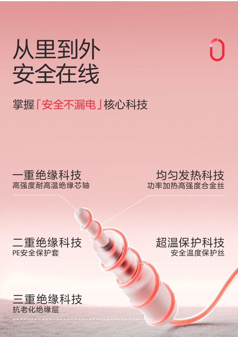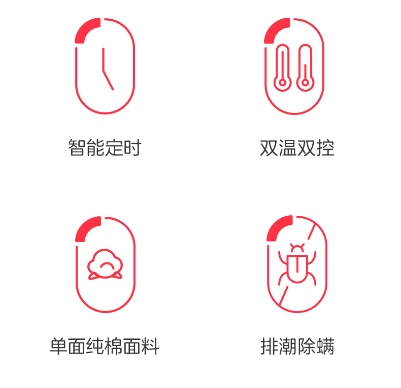 参数 型号:TT200×180-2X 功率:145W 功能:多档调温,一键除螨 开关:双控双温,定时 面料:单面纯棉、单面化纤 包装:纸盒 卖点 1、全线路安全保护调温电热毯,多档调温,定时,遇水遇尿不漏电 2、特大宽幅纯棉面料,舒适透气 3、采用双层螺旋发热线和特别安全保护控制器,实现高温断电保护 4、排潮除螨,四季可用,低能耗,每晚不到一度电!