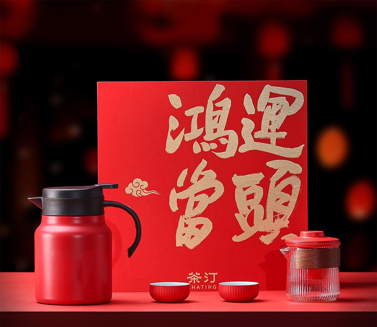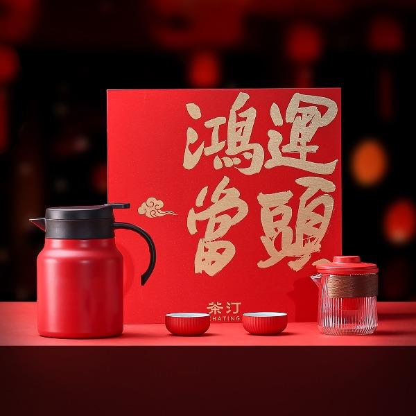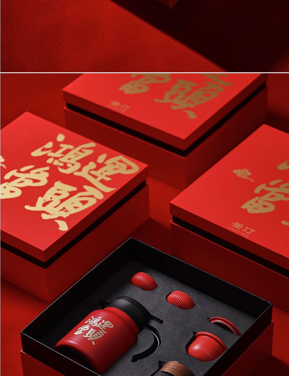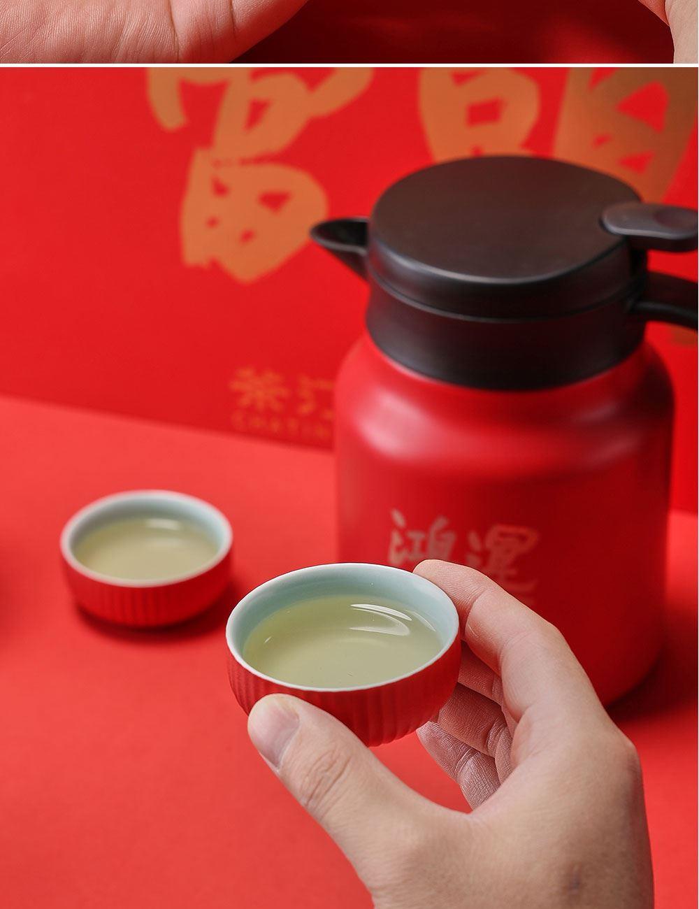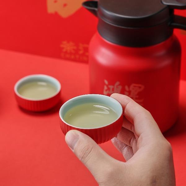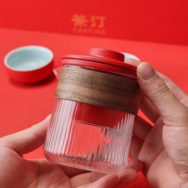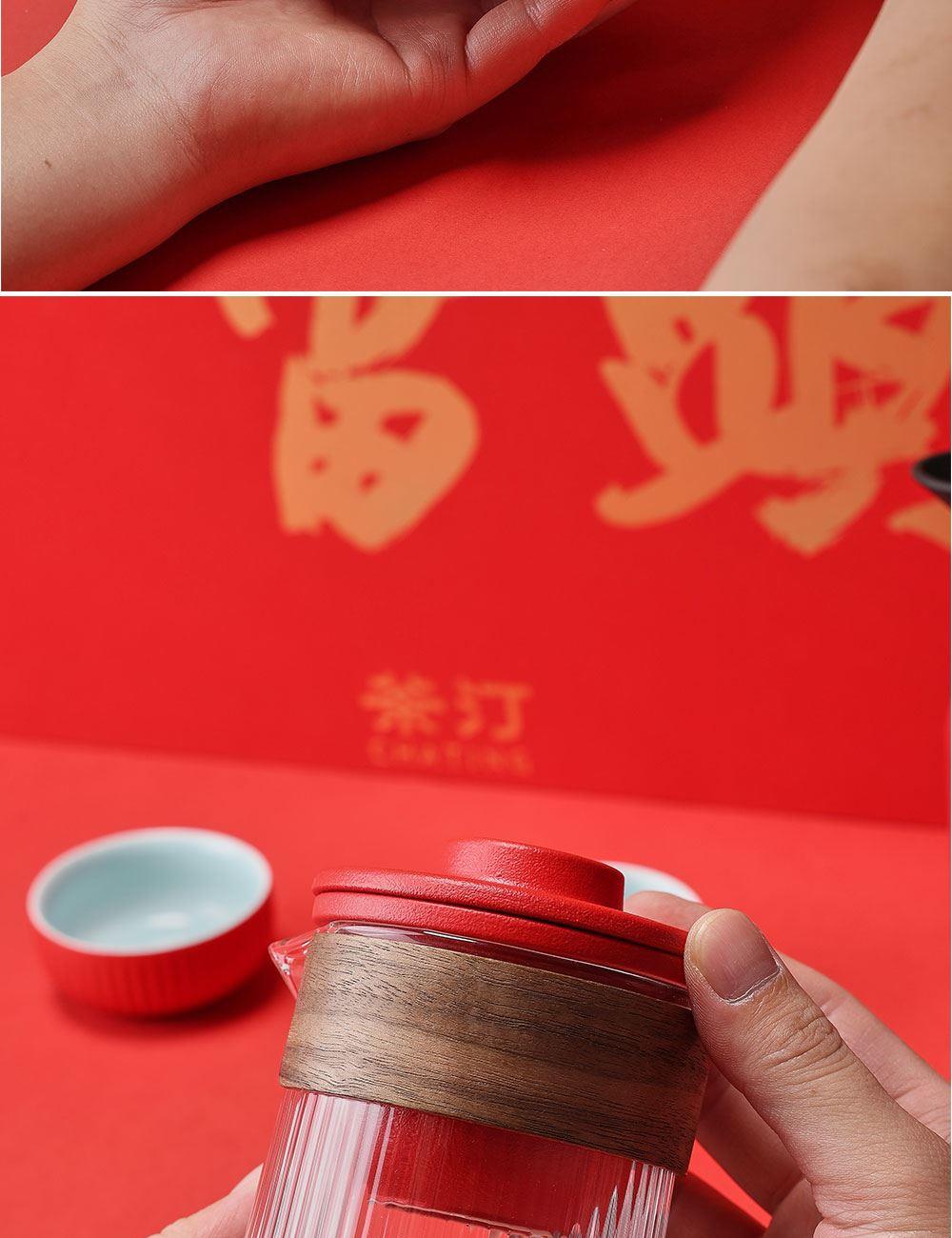 茶汀鸿运当头闷泡壶陶瓷旅行套装(4件套)礼盒