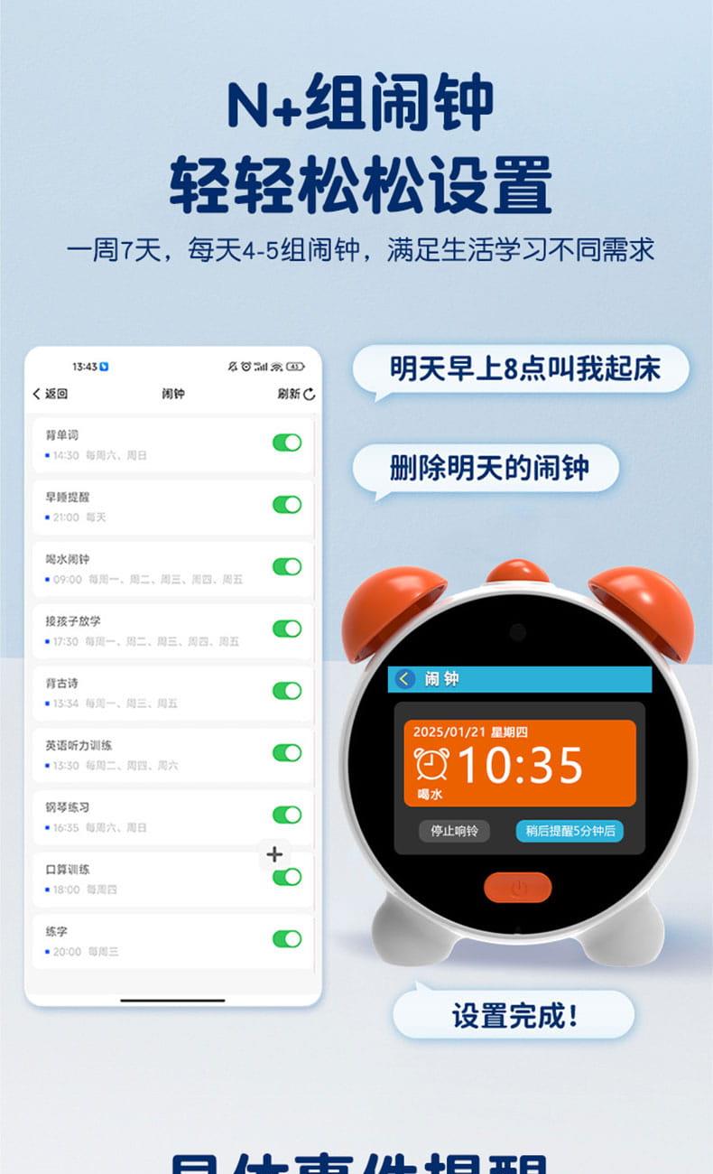 聪鲸豆包AI大模型智能学习闹钟N9